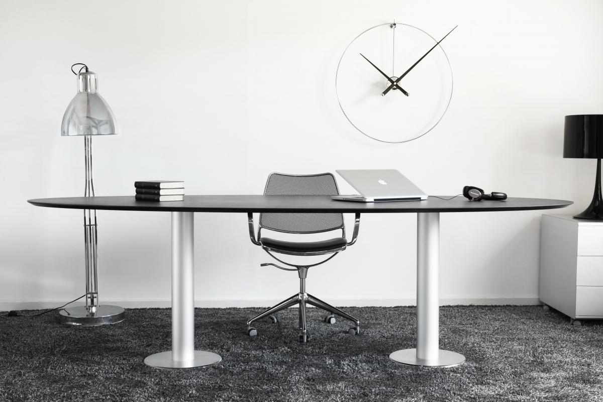 Настенные часы New Anda особенно выгодно смотрятся в минималистичных кабинетах или студиях, где нет ничего лишнего. Пульсирующее сердце модели — механизм немецкого бренда UTS, который славится повышенной щепетильностью в сборке деталей. Корпус выполнен из хромированной стали, обруч — из полированной стали или полированной латуни. Стрелки изготовлены из древесины грецкого ореха, в качестве финишной отделки можно выбрать натуральный цвет или черный лак. Работают кварцевые настенные часы от обычной пальчиковой батарейки АА 1,5 V (в комплекте не идёт). Диаметр 100 см.