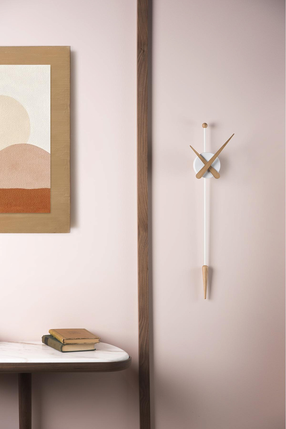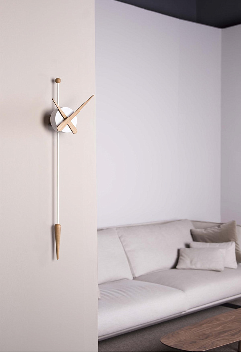 Дань уважения классическим маятниковым часам с обновленной эстетикой. Сочетает в себе отделку из орехового дерева или дуба с черным или белым стекловолокном. Стрелки и маятник с отделкой из дуба, коробка из белого полистирола.