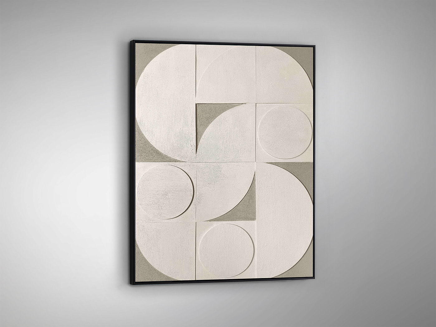 ·ГЕОМИЯ· Геометрическая композиция. Барельеф из листов ЭВА, декорированный и установленный на раме. Каркас из черного полистирола.