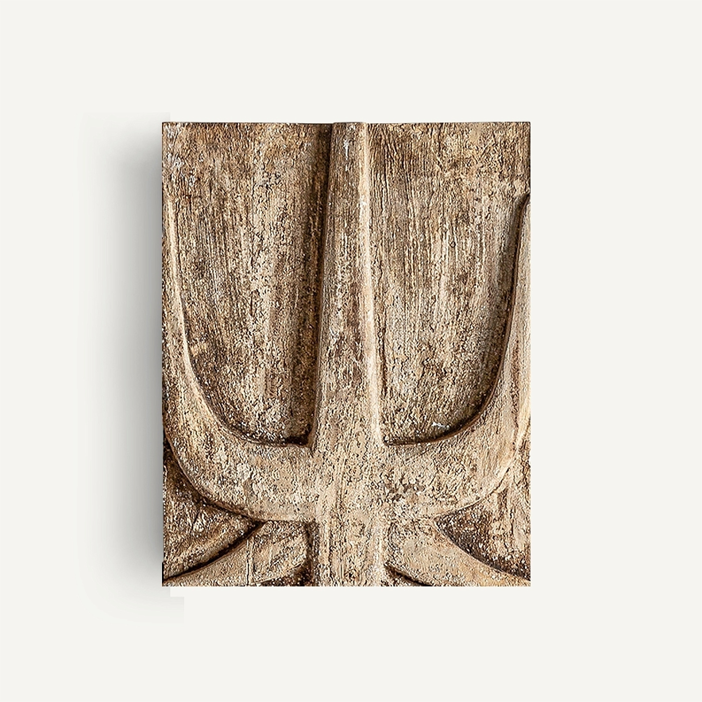 Декоративная панель в этническом стиле, выполненная из бежевого дерева суар с состаренной отделкой.