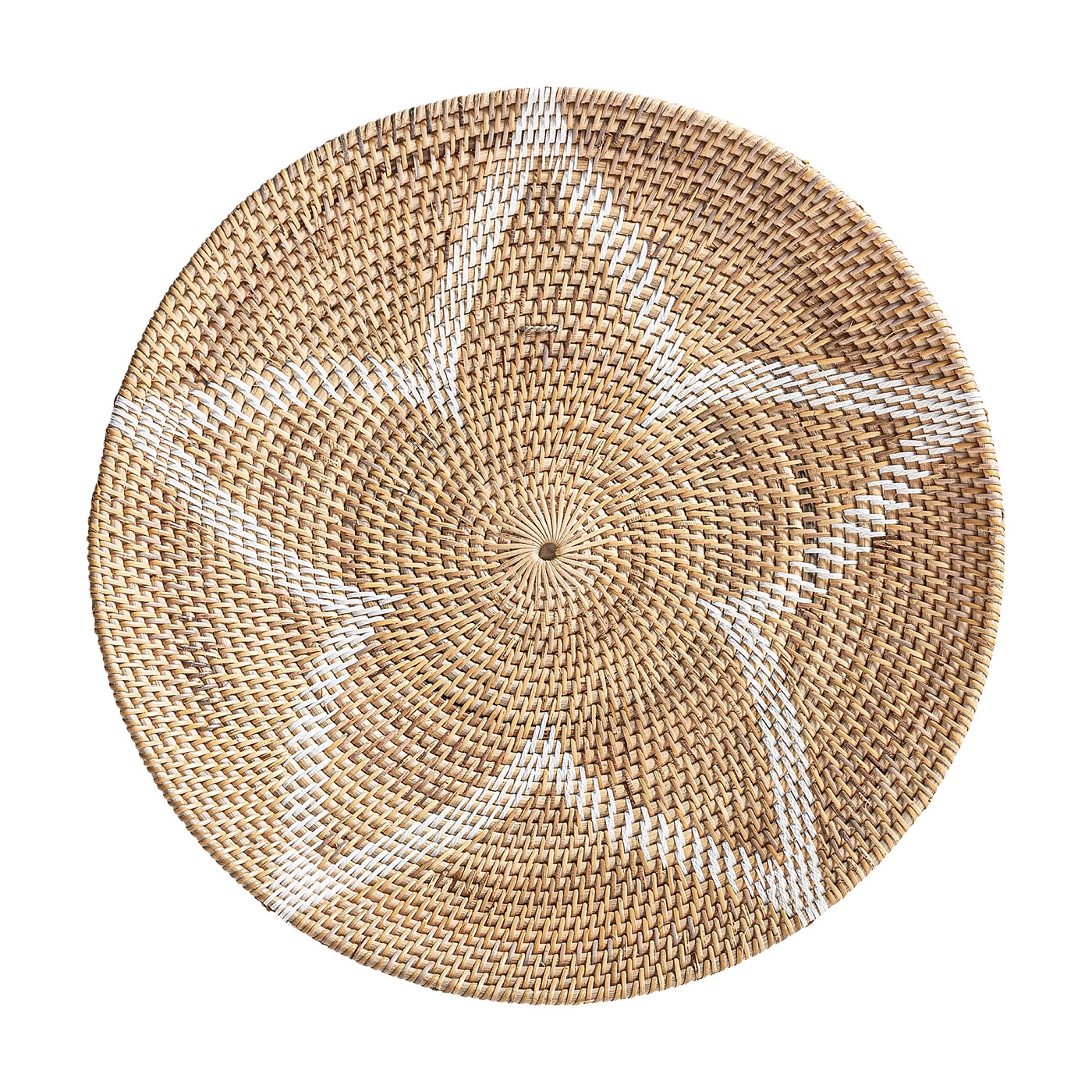 Тарелка имеет круглую форму, полностью сплетена из натурального ротанга двух цветов. В коллекции от Vical тарелки представлены с разными принтами. Но всех их объединяет геометрический рисунок, одинаковая круглая форма и диаметр 70 см.