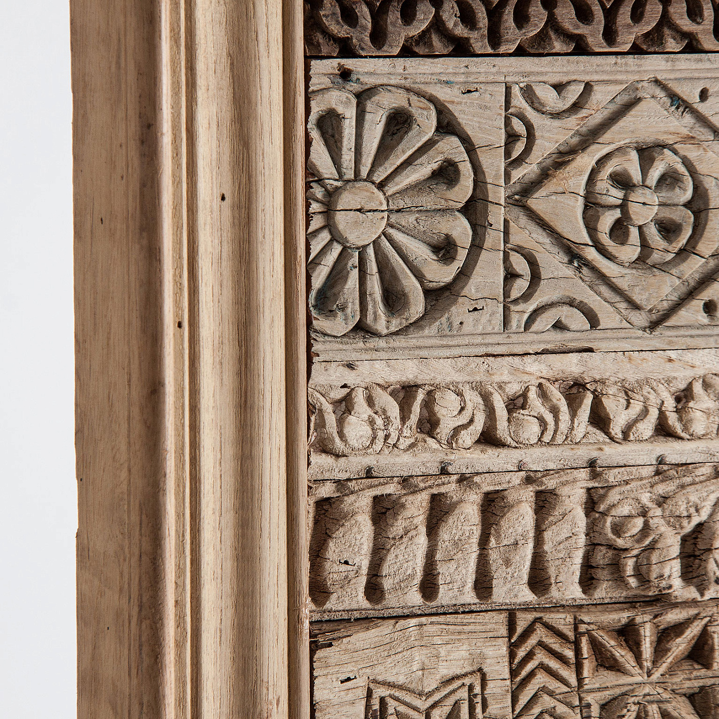 Декоративное панно Аскале, состаренного кремового цвета, в восточном стиле. Изготовлен из тикового дерева в сочетании с деревом манго.