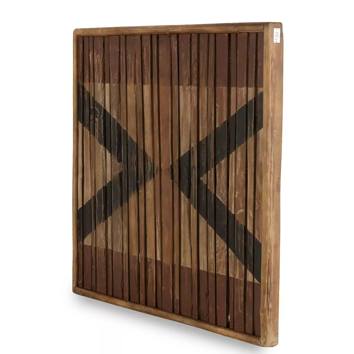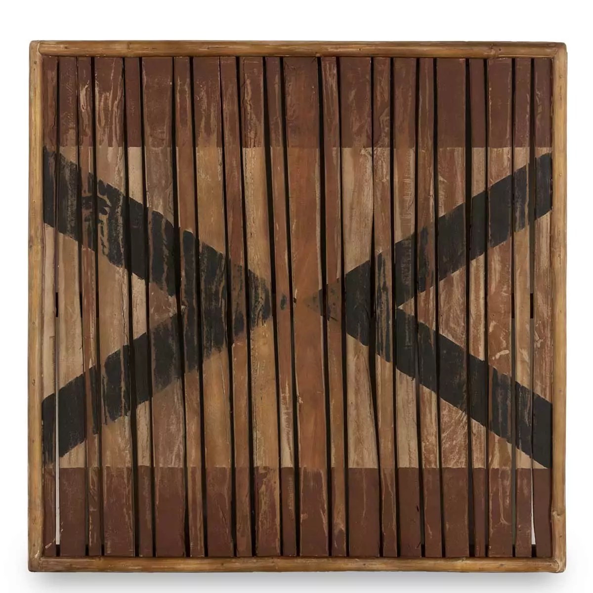 Картина на дереве с треугольниками и полосками