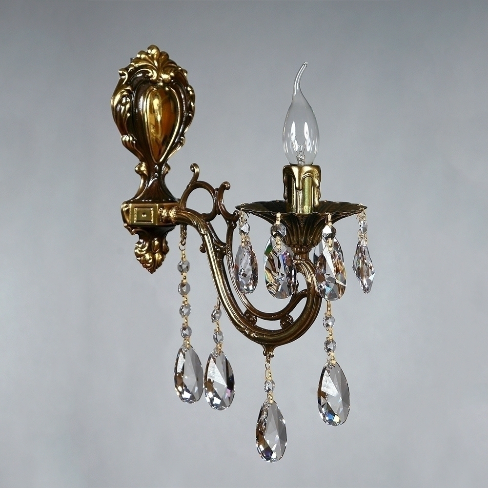 Настенный светильник, выполненный из латуни в блестящей бронзовой отделке с подвесками в форме капли из хрусталя Asfour.