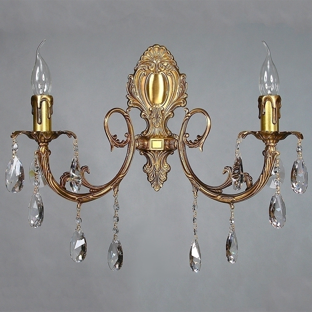 Настенный светильник, выполненный из латуни в матовой бронзовой отделке с подвесками в форме капли из хрусталя Asfour.