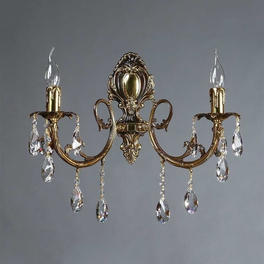 Настенный светильник, выполненный из латуни в блестящей бронзовой отделке с подвесками в форме капли из хрусталя Asfour.