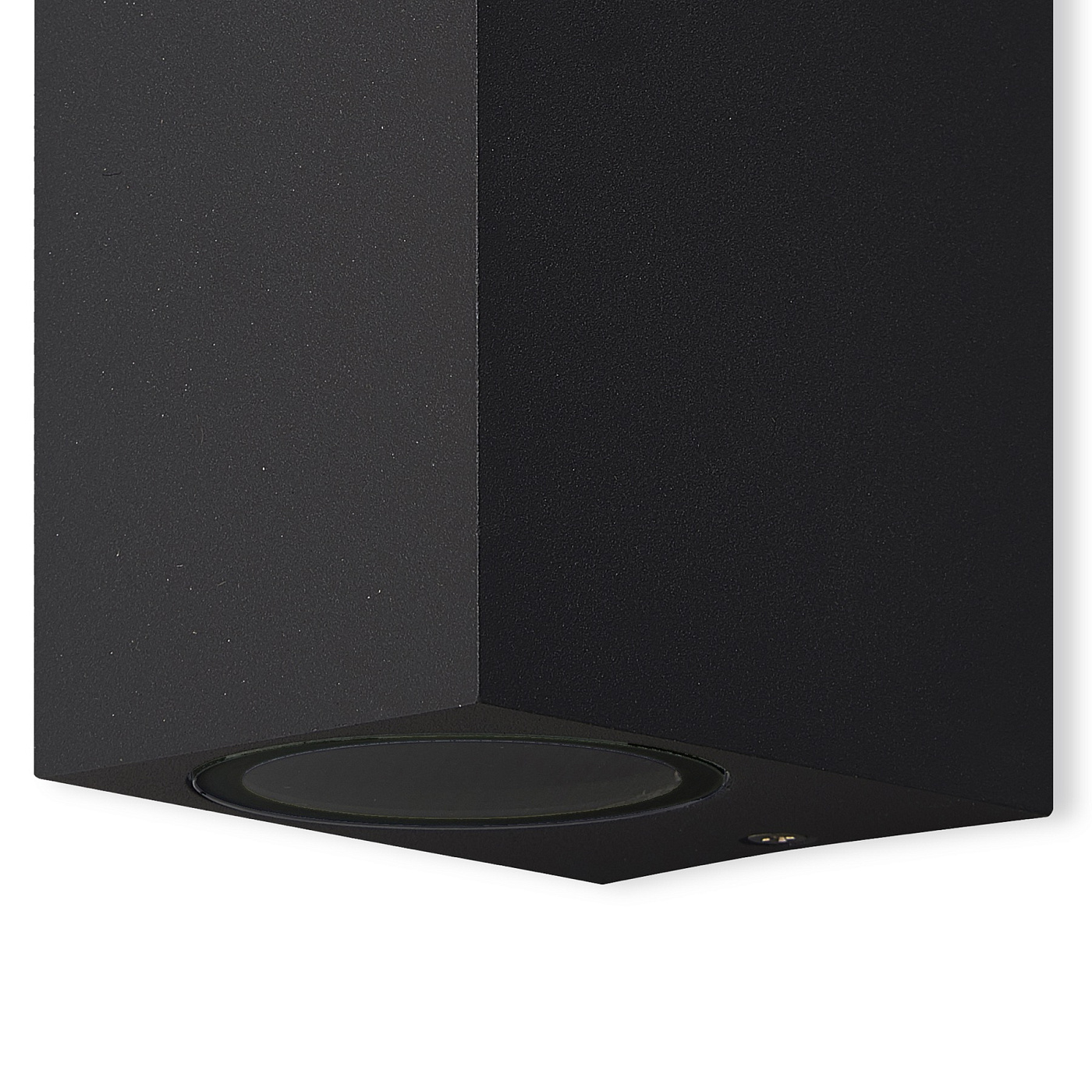 Светодиодный настенный светильник Kandanchu, выполненный из алюминия с защитным стеклянным диффузором свеху и снизу. Подходит для наружного освещения. Доступен в черном цвете.
