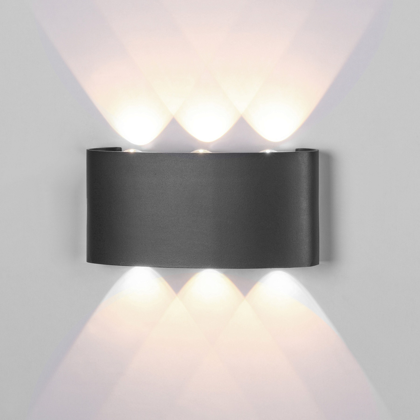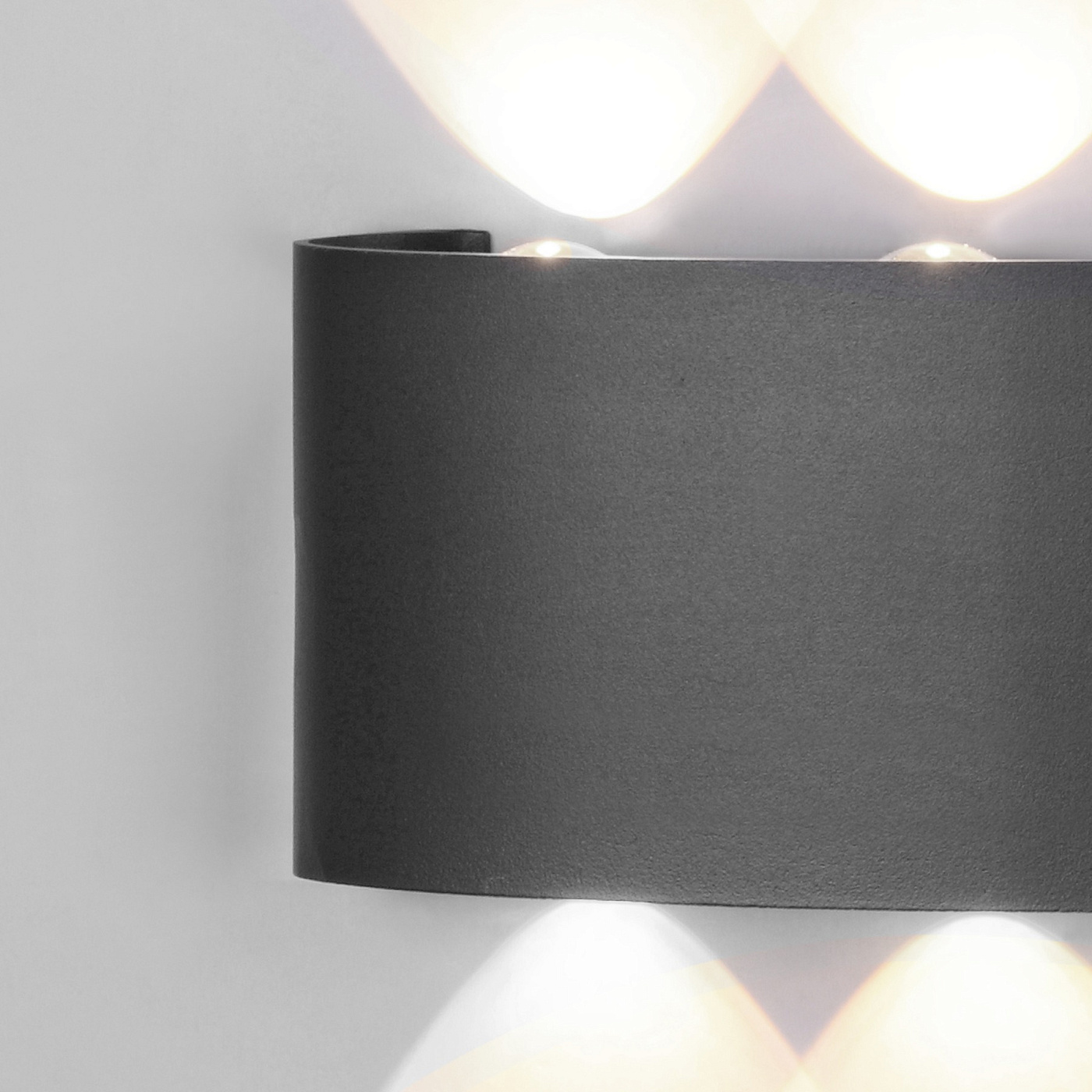 Бра для наружного освещения Arcs, с плафоном, выполненным из алюминия. Доступно в белом и темно-сером цвете. Лампа теплого света входит в комплект.