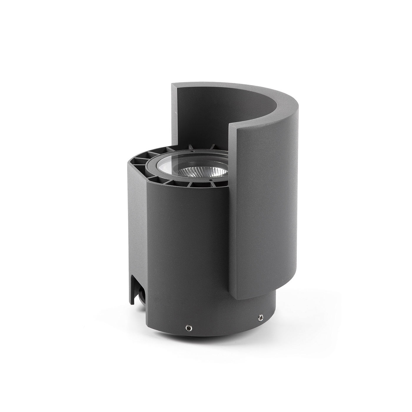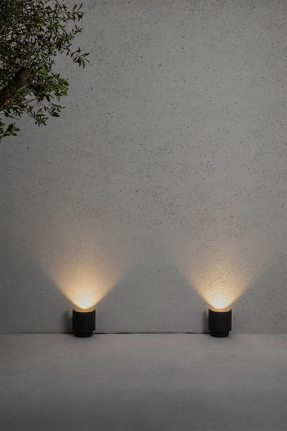NOBORU - темно-серый проектор для наружного освещения фасадов . Он устанавливается на поверхности и позволяет купаться в стенах без бликов