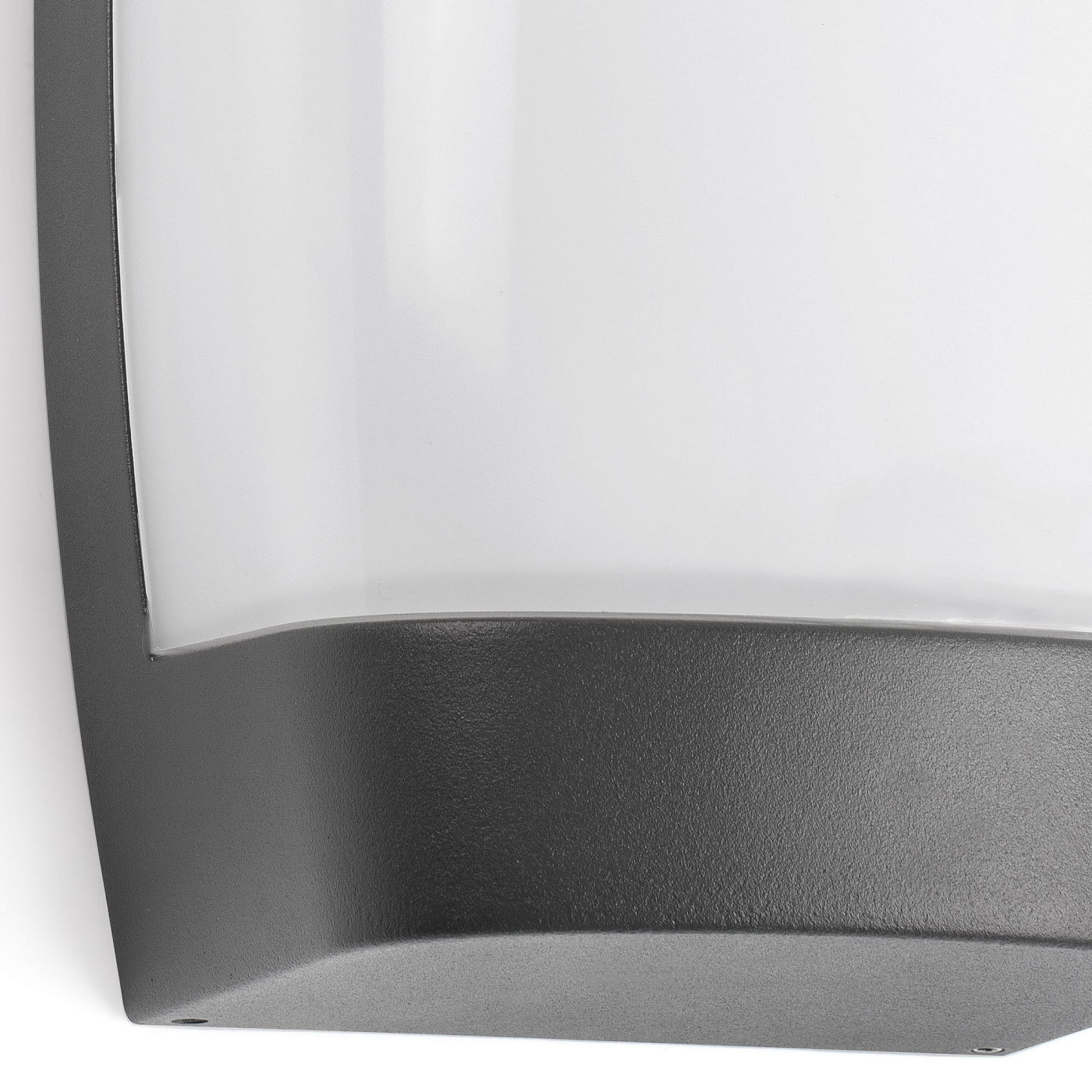 Темно-серый настенный светильник для освещения сада. POL оснащен широким рассеивателем для распределения света, который излучает светодиод. Идеально подходит для проходов и балконов .