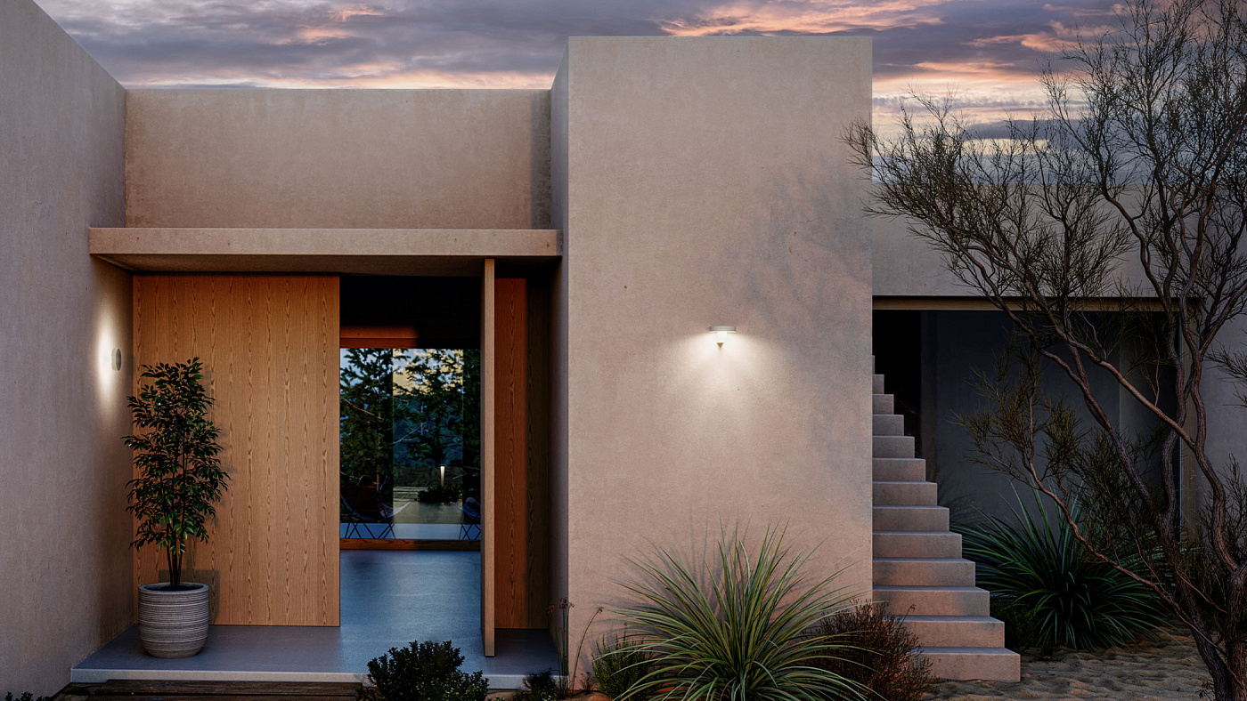 Soft — это семейство уличных светильников, включающее в себя тумбу и два настенных светильника. Настенные светильники позволяют создавать эффекты непрямого или прямого освещения (свет, заливающий стены).
