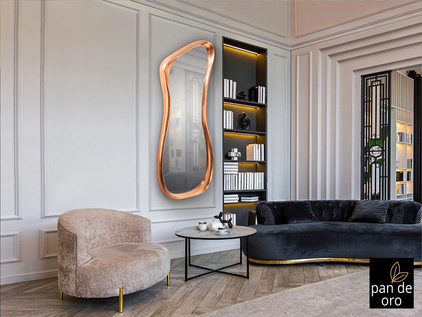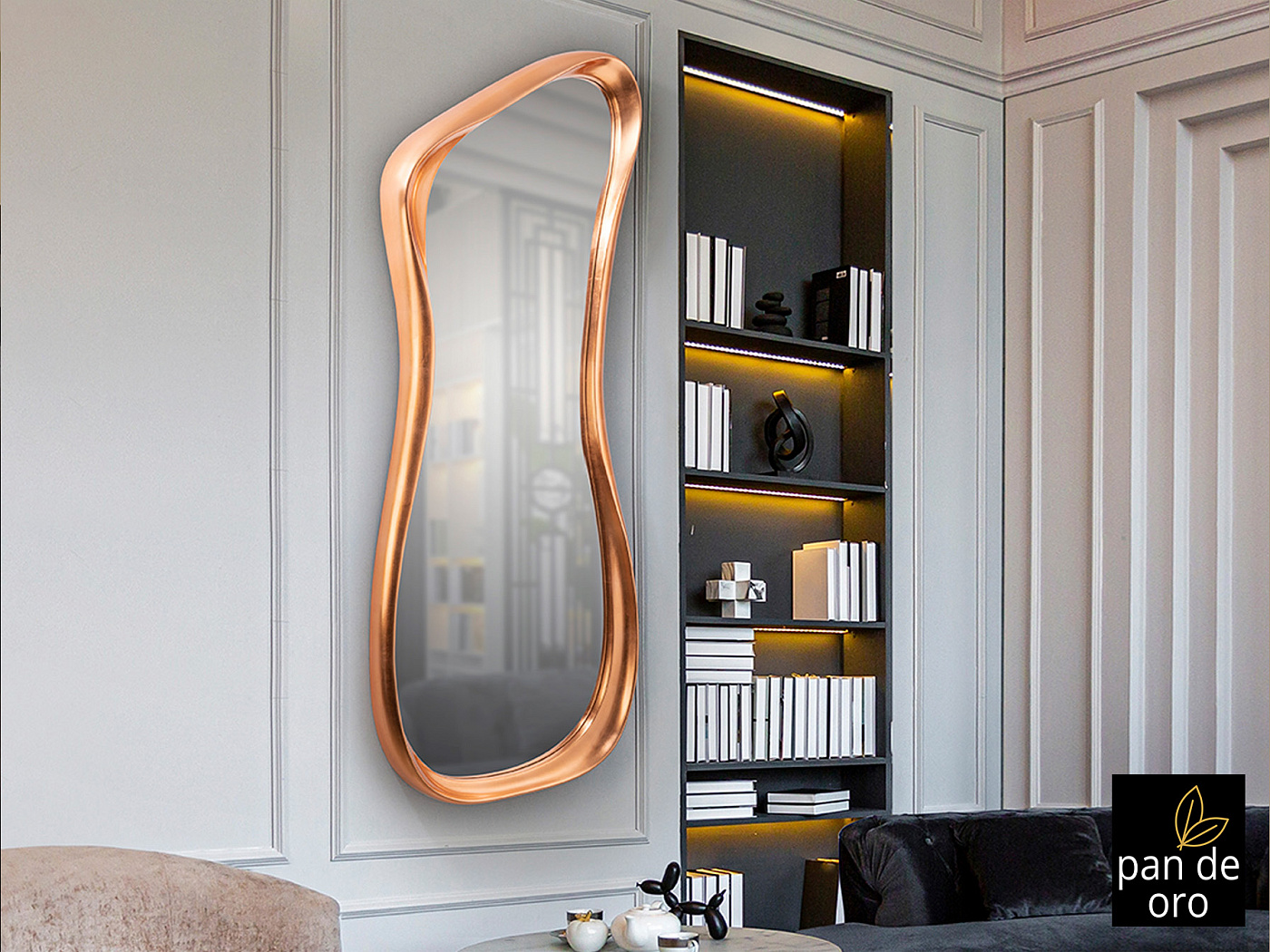 Декоративное зеркало с рамой из полиуретана, отделка СУСАЛЬНОЕ РОЗОВОЕ ЗОЛОТО.