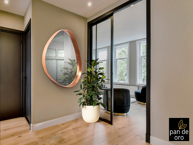 Декоративное зеркало с рамой из полиуретана, отделка СУСАЛЬНОЕ РОЗОВОЕ ЗОЛОТО.