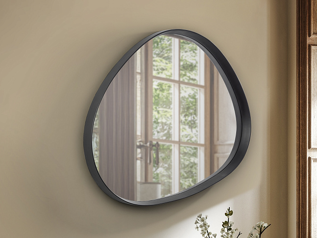 Декоративное зеркало с рамой из полиуретана, матово-черная отделка.