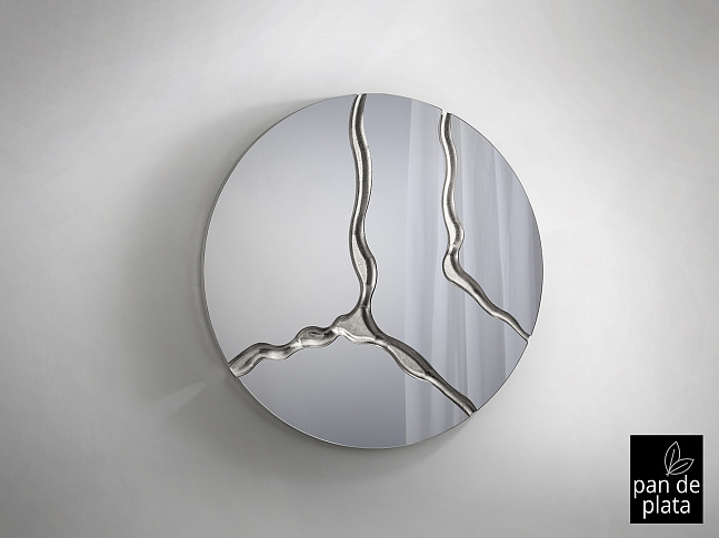 Круглое зеркало с задней частью МДФ, отделка SILVER LEAVES.