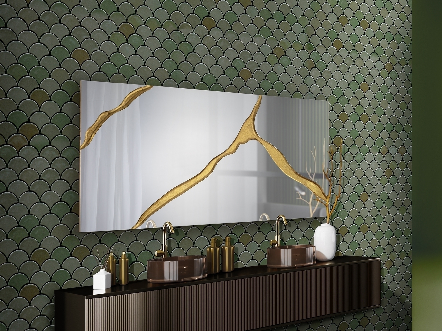Прямоугольное зеркало Surcos золотое 80X180