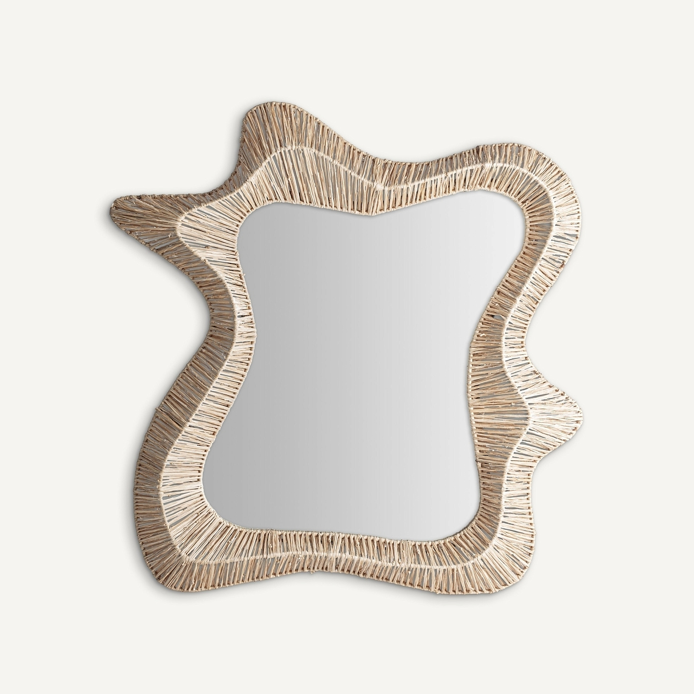 Зеркало из коричневой рафии в сочетании с зеркалом и DM-деревом. Ширина: 130 см, Глубина: 10 см, Высота: 121 см