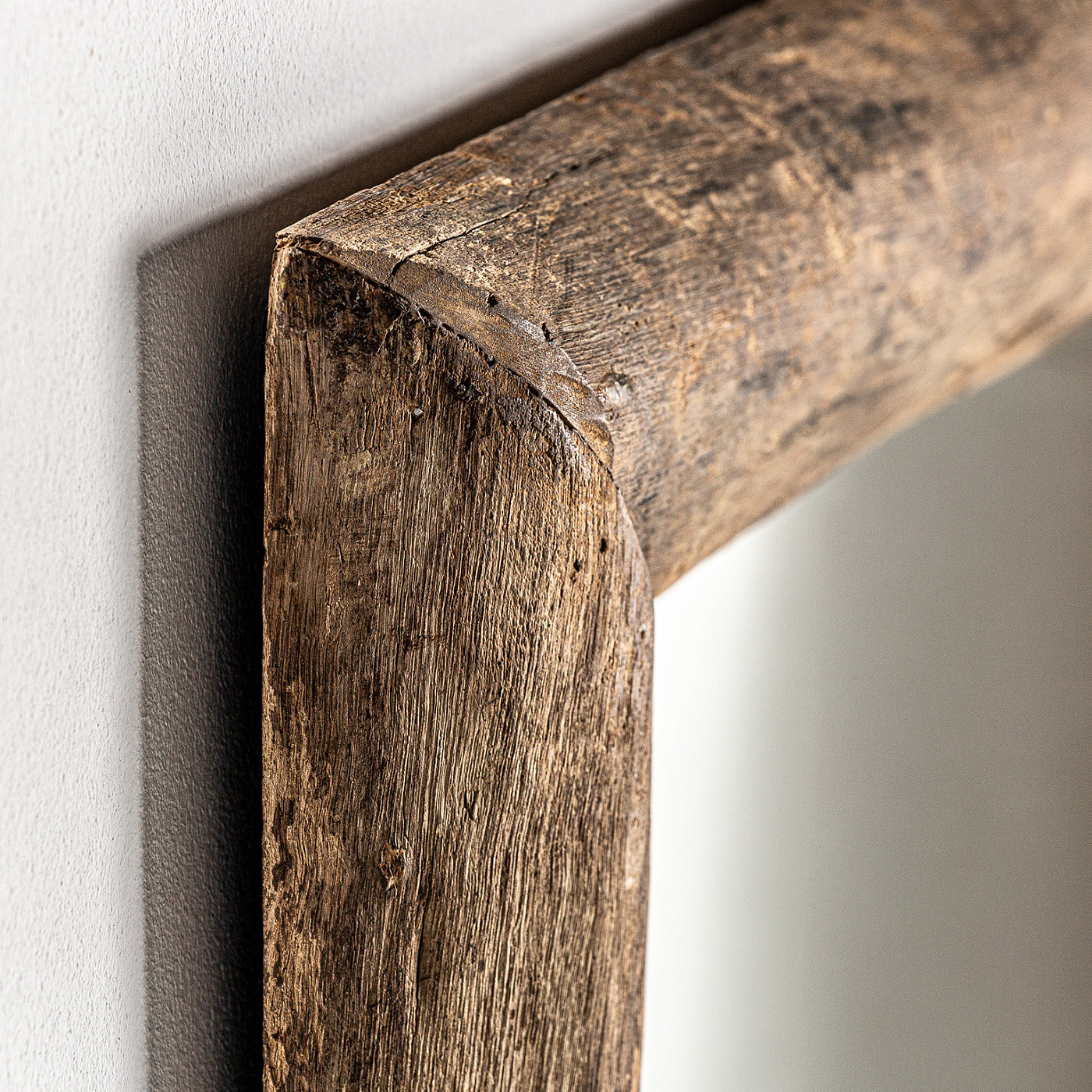 Зеркало Badai, натурального состаренного цвета, в этническом стиле. Изготовлено из переработанного мангового дерева, дополнено зеркалом. Ширина: 64 см, Глубина: 6 см, Высота: 116 см