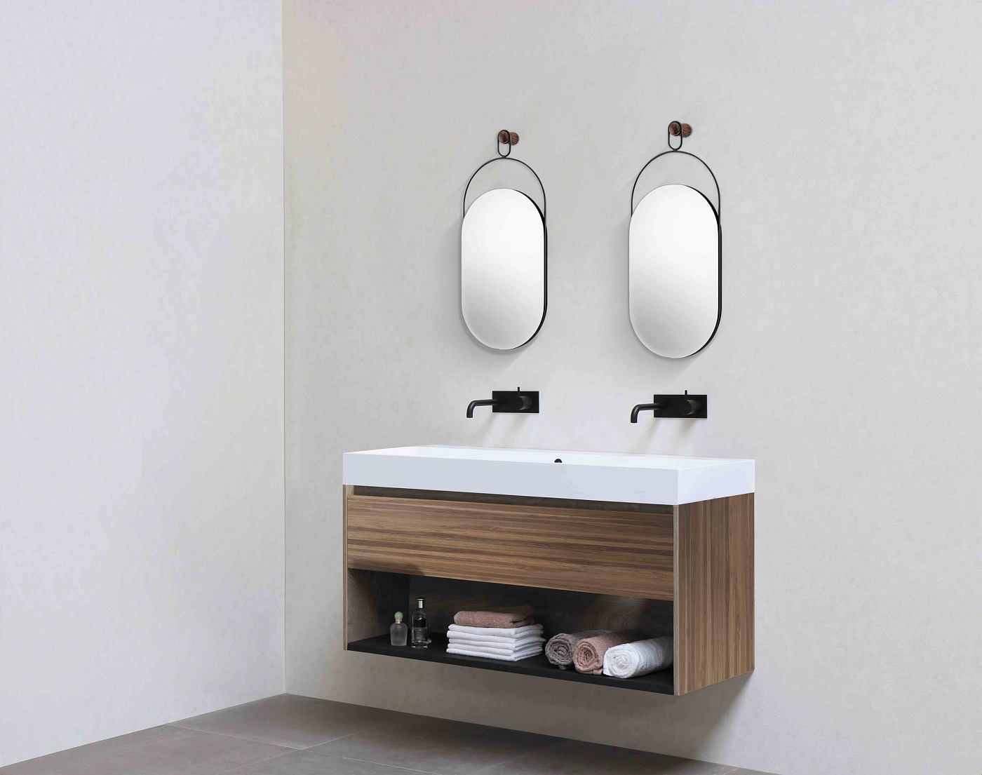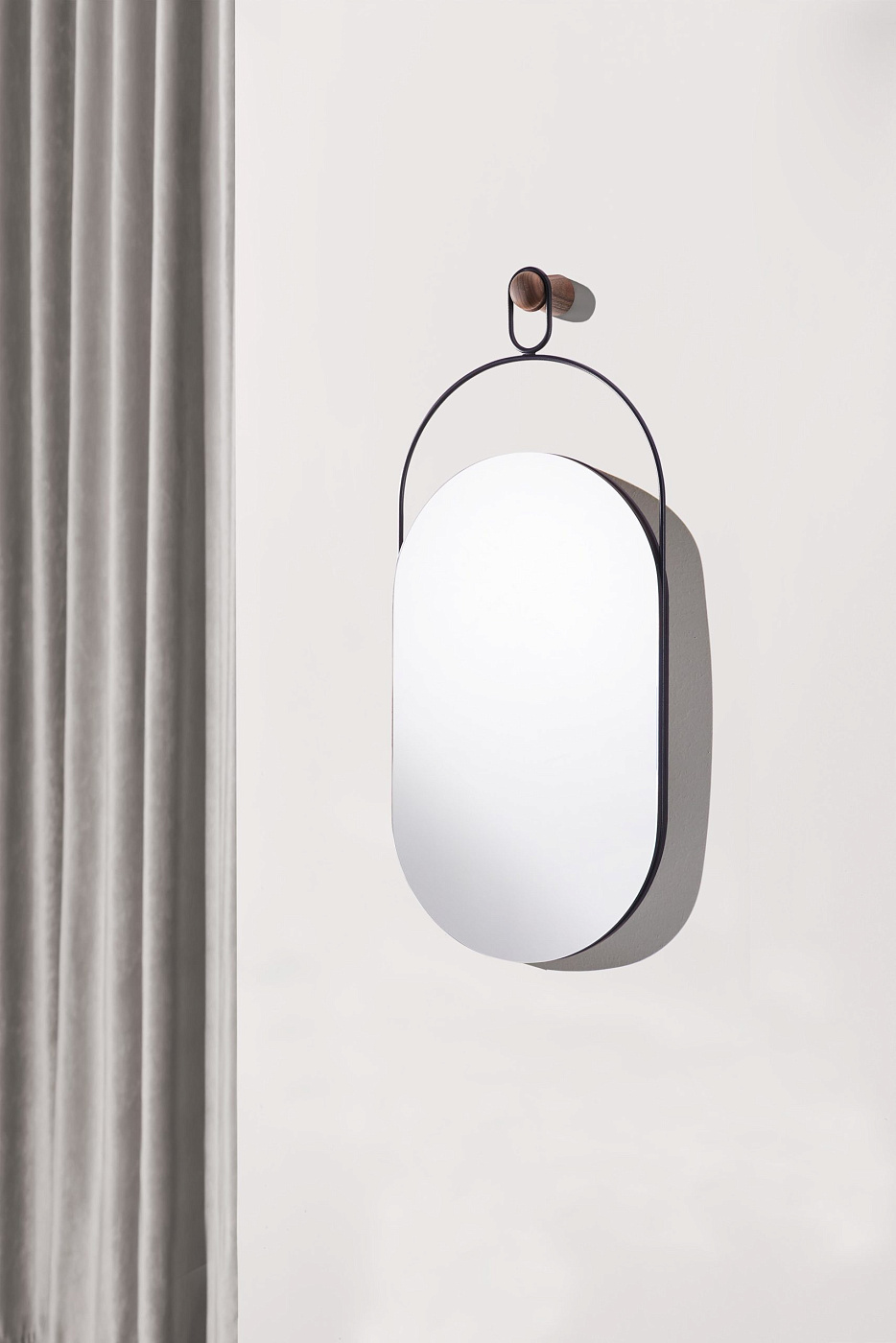 Изысканное зеркало, вдохновленное дизайном ювелирных изделий, выполненное из орехового дерева, кольцо с черным покрытием.