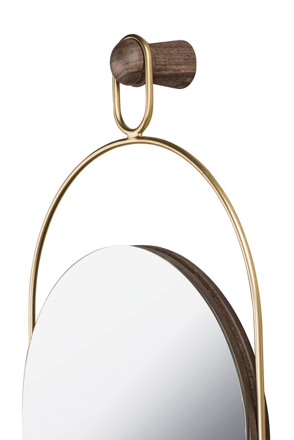 Изысканное зеркало, вдохновленное дизайном ювелирных изделий, выполненное из орехового дерева/кольцо с золотым покрытием.