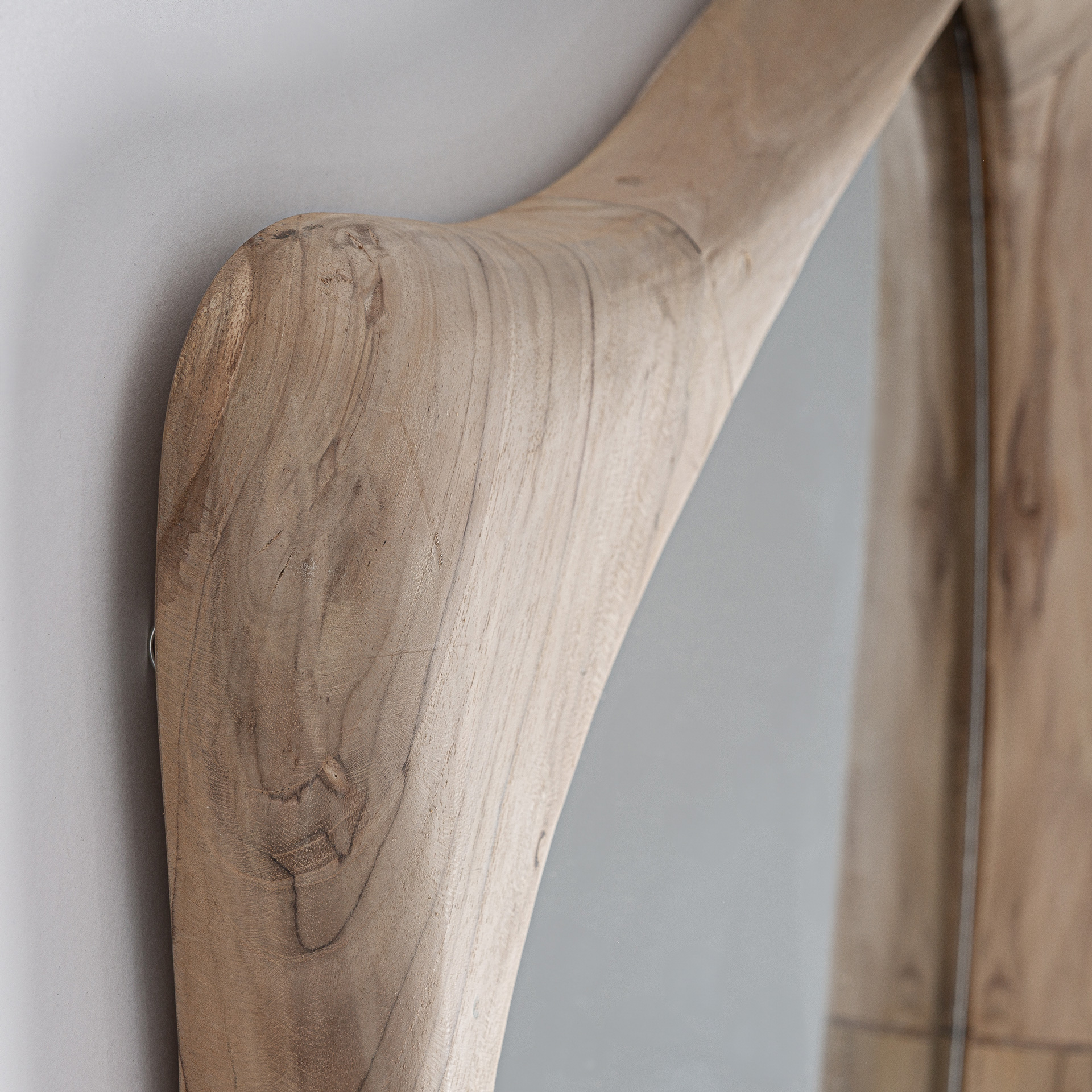 Зеркало Humble от VICAL отличается органичным силуэтом и скульптурной выразительностью, где коричневая тиковая древесина обработана в плавные, естественные формы. Его неправильная форма придает динамизм и неповторимый шарм любому пространству. Humble задумано как декоративный элемент, выходящий за рамки своей функциональности, привносящий тепло и характер в интерьеры, вдохновленные этническими и современными мотивами. Ширина: 68 см, Глубина: 5 см, Высота: 132 см