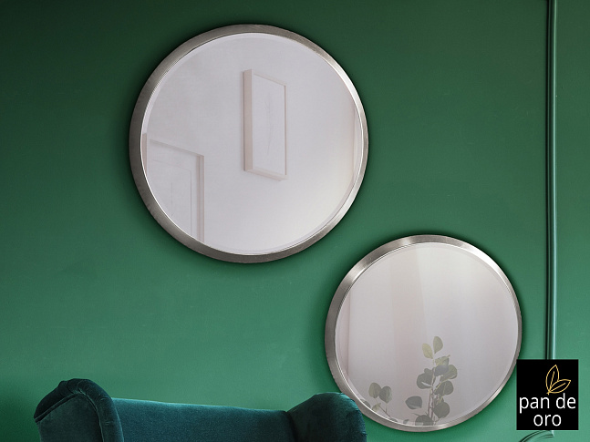 Зеркало круглое с основанием шириной 4 см из MDF с покрытием из серебряной фольги. Зеркальное полотно с фаской.