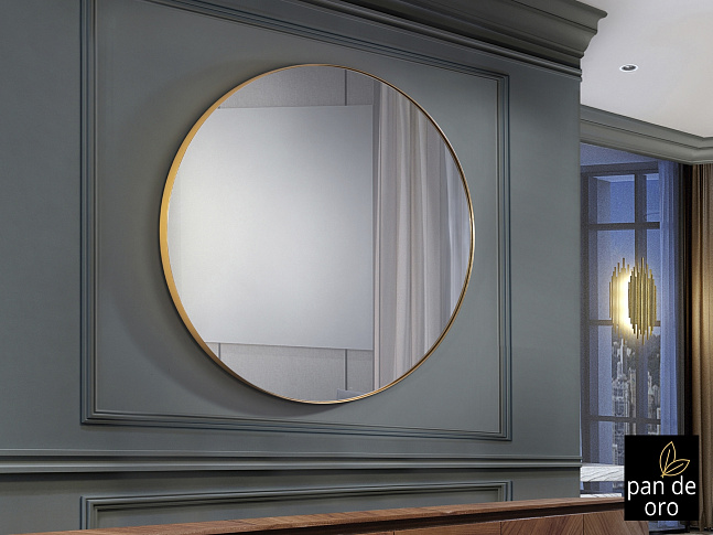 Зеркало круглое в раме из MDF c покрытием из золотой фольги.