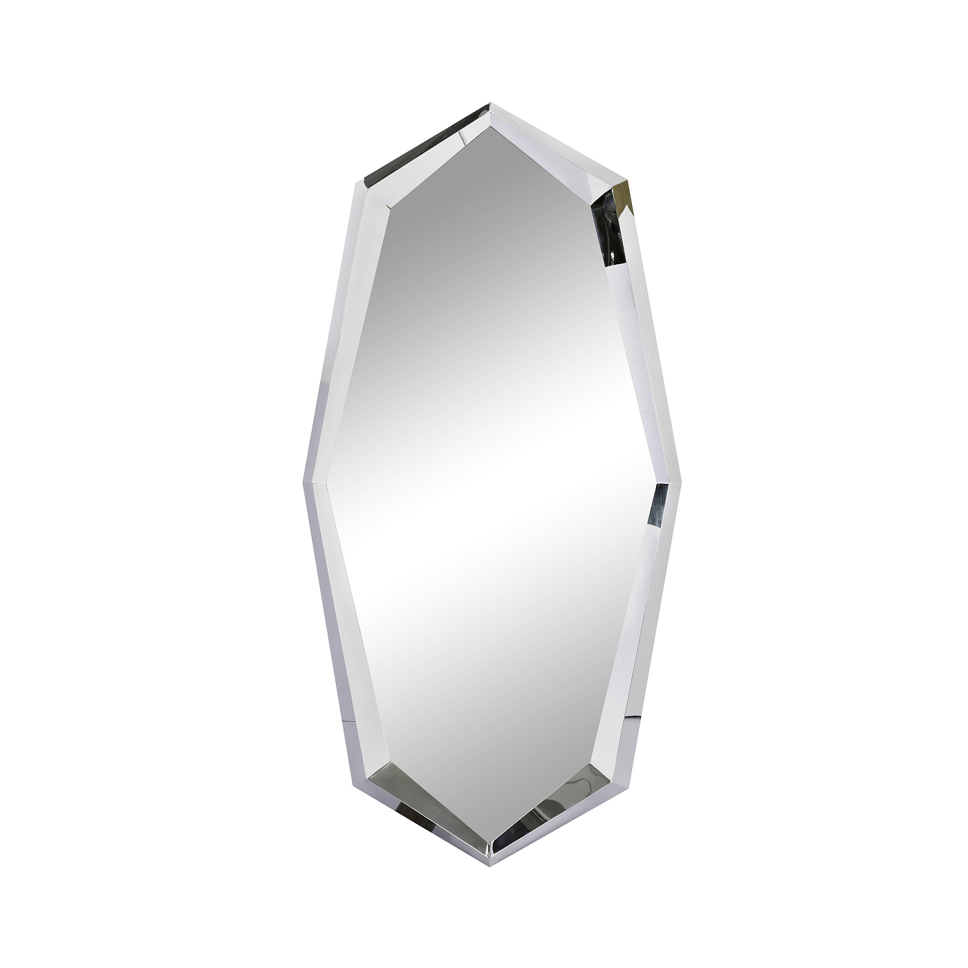 Зеркало в многогранной раме из полированной стали с высокоглянцевым покрытием.