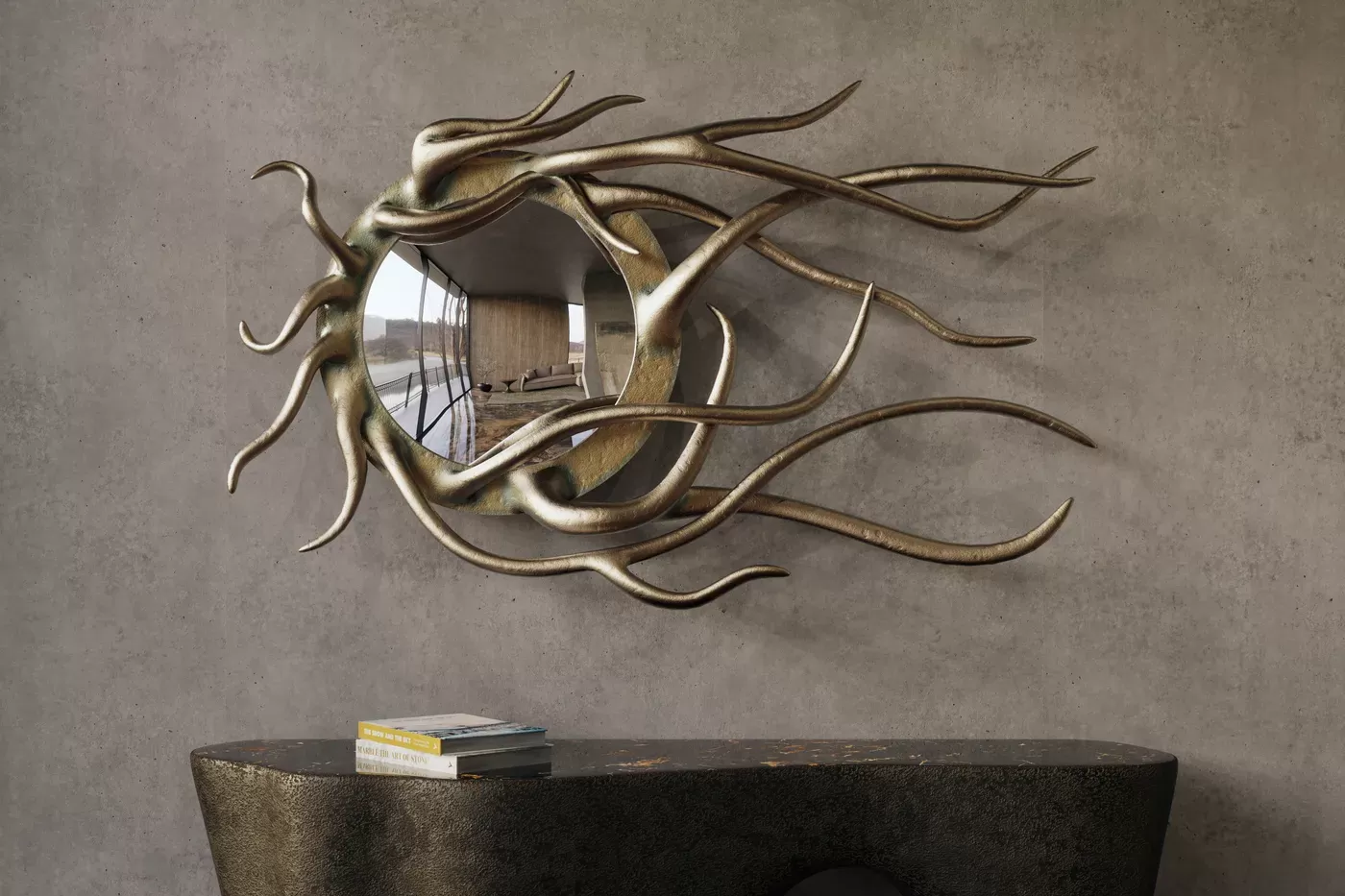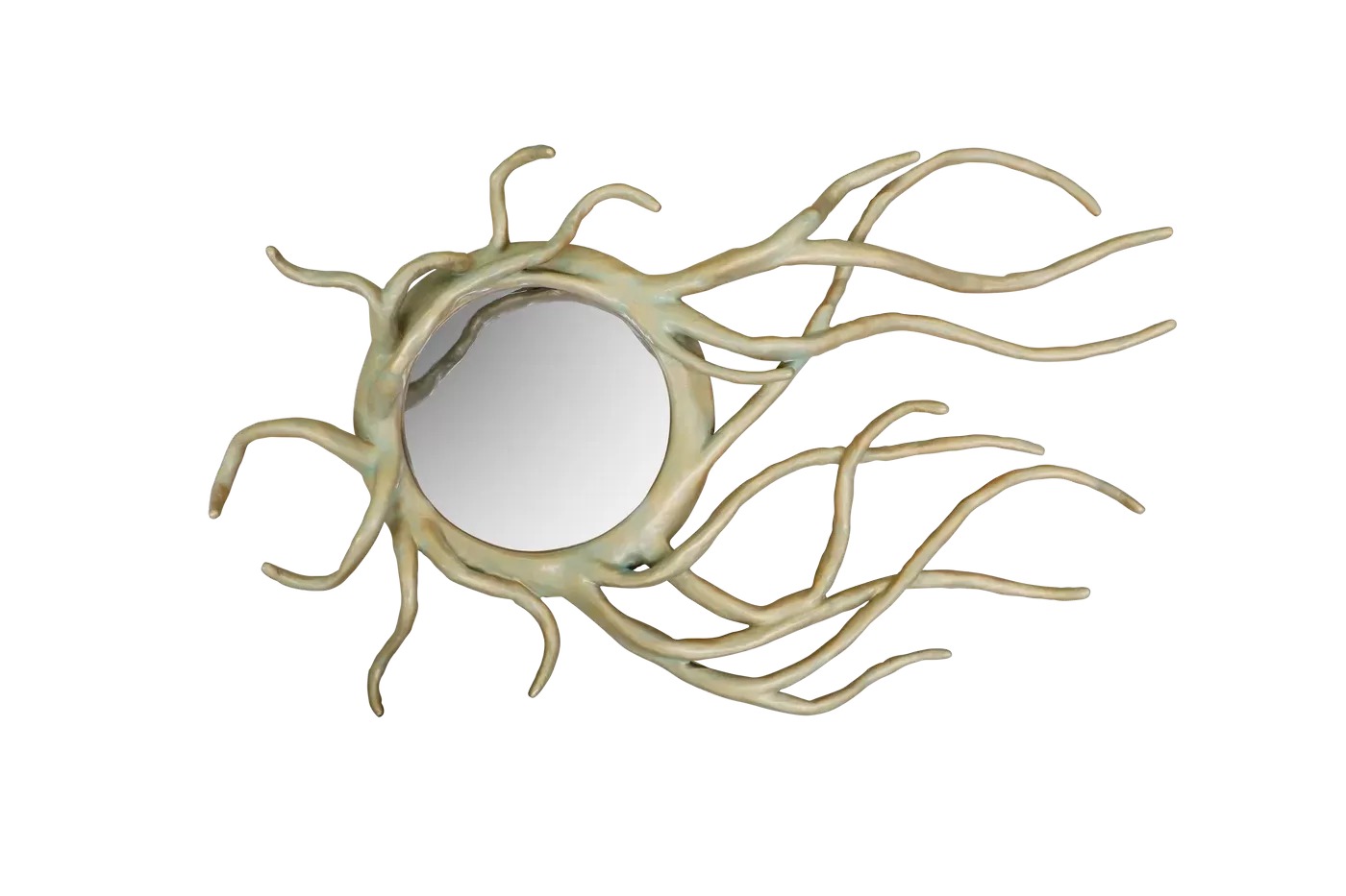 Свидетельство приверженности Karpa скульптурному совершенству. Изготовленное с точностью, круглое выпуклое зеркало охвачено замысловатыми ветвями, создавая потрясающую визуальную симфонию. Это роскошное зеркало — больше, чем отражение; это художественное выражение, которое превращает ваше пространство в оазис роскоши.
