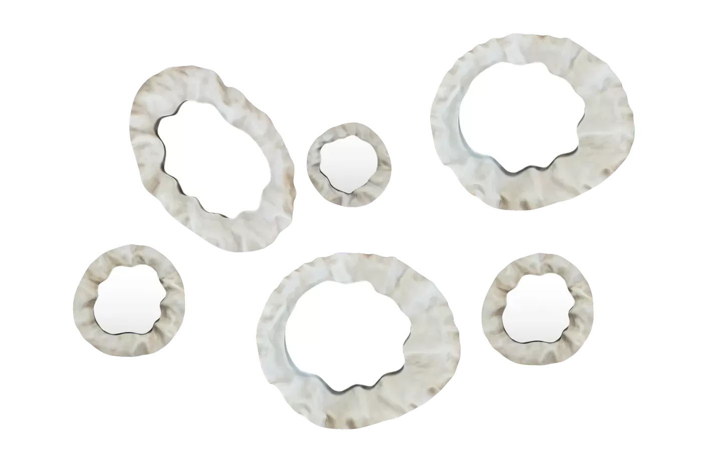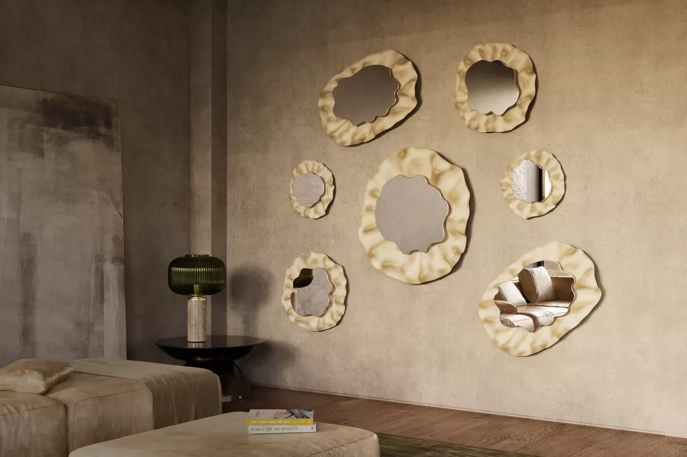 Зеркала Nenúfares вдохновлены изящной и органической формой кувшинок. Изготовленные из стекловолокна, эти зеркала имеют уникальный дизайн, который имитирует естественную элегантность кувшинок. С зеркалом в центре они не только отражают свет, но и добавляют нотку художественного стиля в любое пространство. Эти зеркала, доступные в четырех разных размерах, идеально подходят для создания потрясающих настенных композиций.