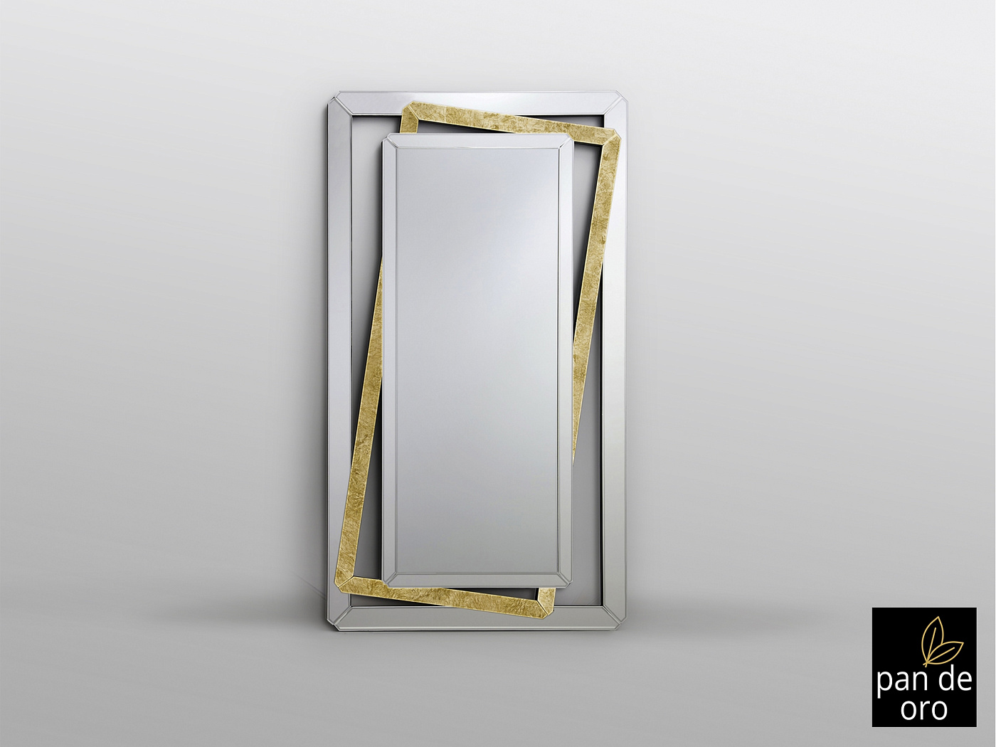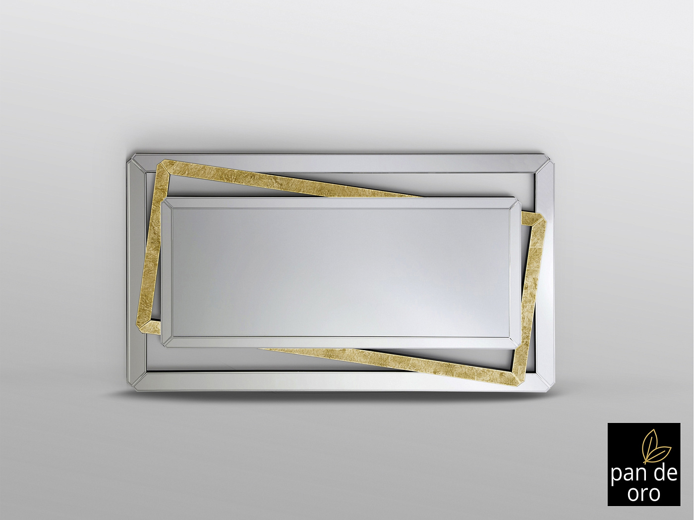 Зеркало с центральной пластиной. Каркас из скошенных зеркал и очков на фоне GOLD LEAF, скошенный. Задняя часть из МДФ покрыта черным лаком. Готовы повесить в горизонтальном или вертикальном положении.