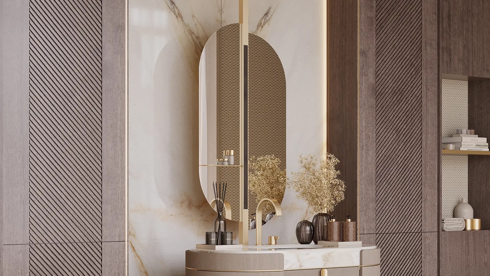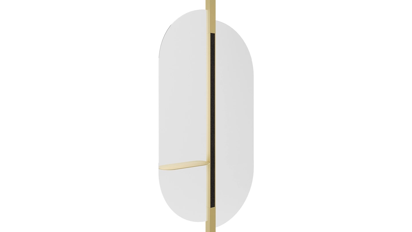 Зеркало PADUA, на которое приятно смотреть, придаст вашей ванной комнате стильную атмосферу в стиле ар-деко. Элегантный, со смещением эллиптической формы, он украшен фирменной полосой деревянного шпона с латунной окантовкой по центральной линии.
