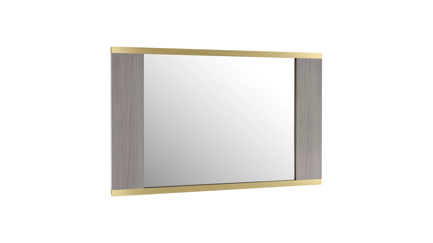 Элегантное зеркало PHOENIX II представляет собой прямоугольник из прозрачного стекла в рамке из смешанного материала - матовой латуни и сатинированного шпона дерева. Благодаря широкой горизонтальной форме дизайн будет отражать больше света на уровне глаз, что делает его отличным выбором для более темных помещений.