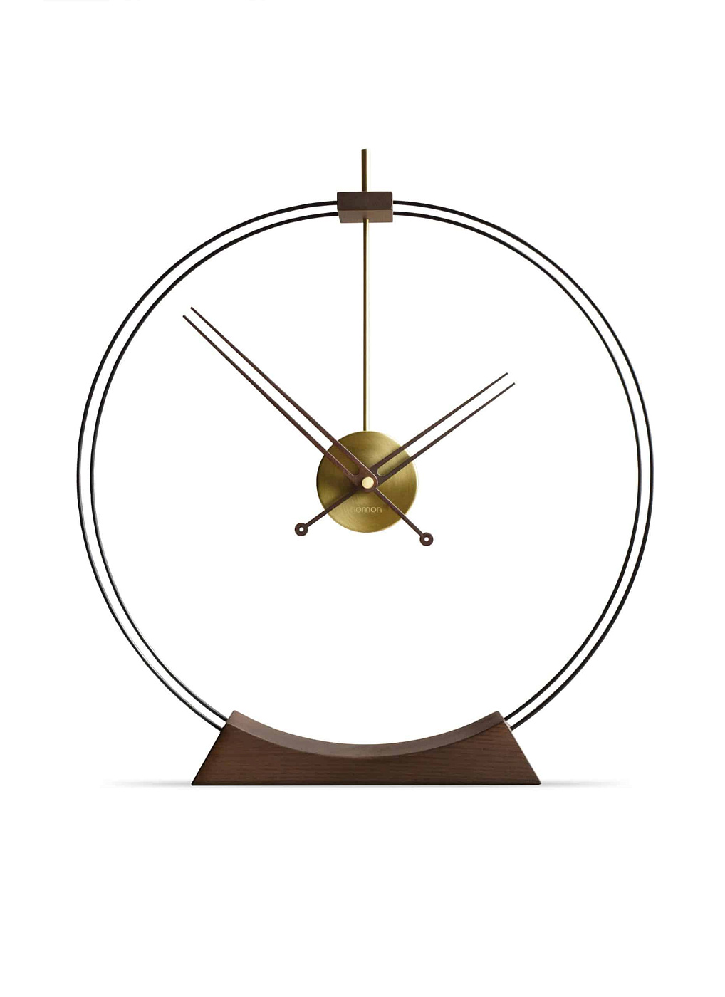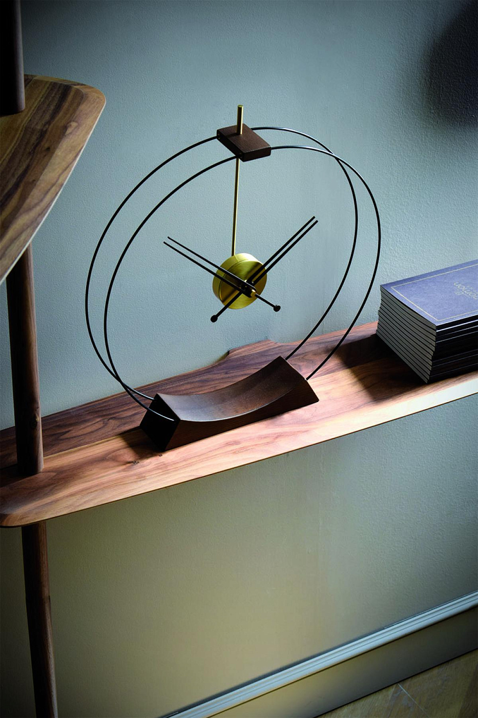 Немецкий кварцевый механизм UTS, безусловно, справляется со своей функцией на высший балл, но в настольных часах Aire первостепенное значение имеет не точность хода, а осмысленный в каждой детали дизайн. В этом образе дизайнер попытался ухватить саму сущность времени — ускользающего, миражного, растворяющегося в воздухе. Получился эффектный аксессуар. Такие настольные часы можно купить в кабинет, гостиную, спальню в современном стиле.