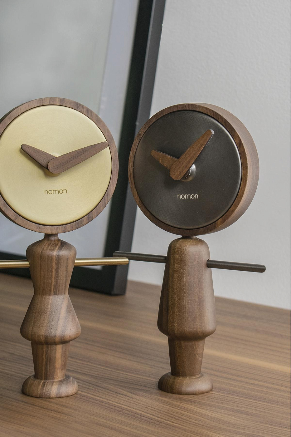 Nomon символические символы Nomon, характерные для сочетания характерных материалов бренда - американского ореха или ясеня в отделке дубом - с металлическими деталями. Корпус и стрелки из орехового дерева, металлические детали из полированной латуни.