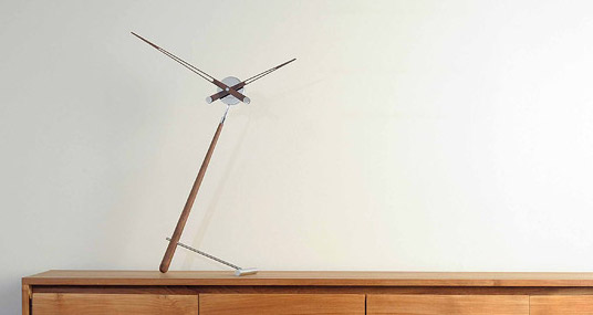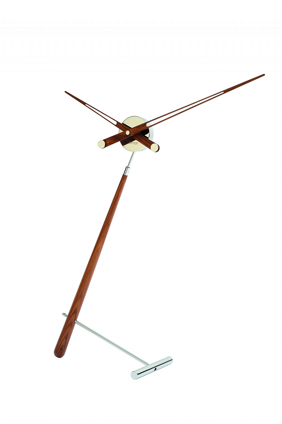 Оригинальные настольные часы Puntero от испанской компании Nomon изготовлены из металла и массива ореха. Диаметр окружности, описываемой большой стрелкой, составляет 73 см. Максимальная высота этих настольных часов составляет 94 см и достигается при прохождении большой стрелкой условной цифры «12». Бесшумную работу и безупречную точность часам обеспечивает кварцевый механизм UTS (производство Германия). Настольные часы Puntero представлены в трех версиях: