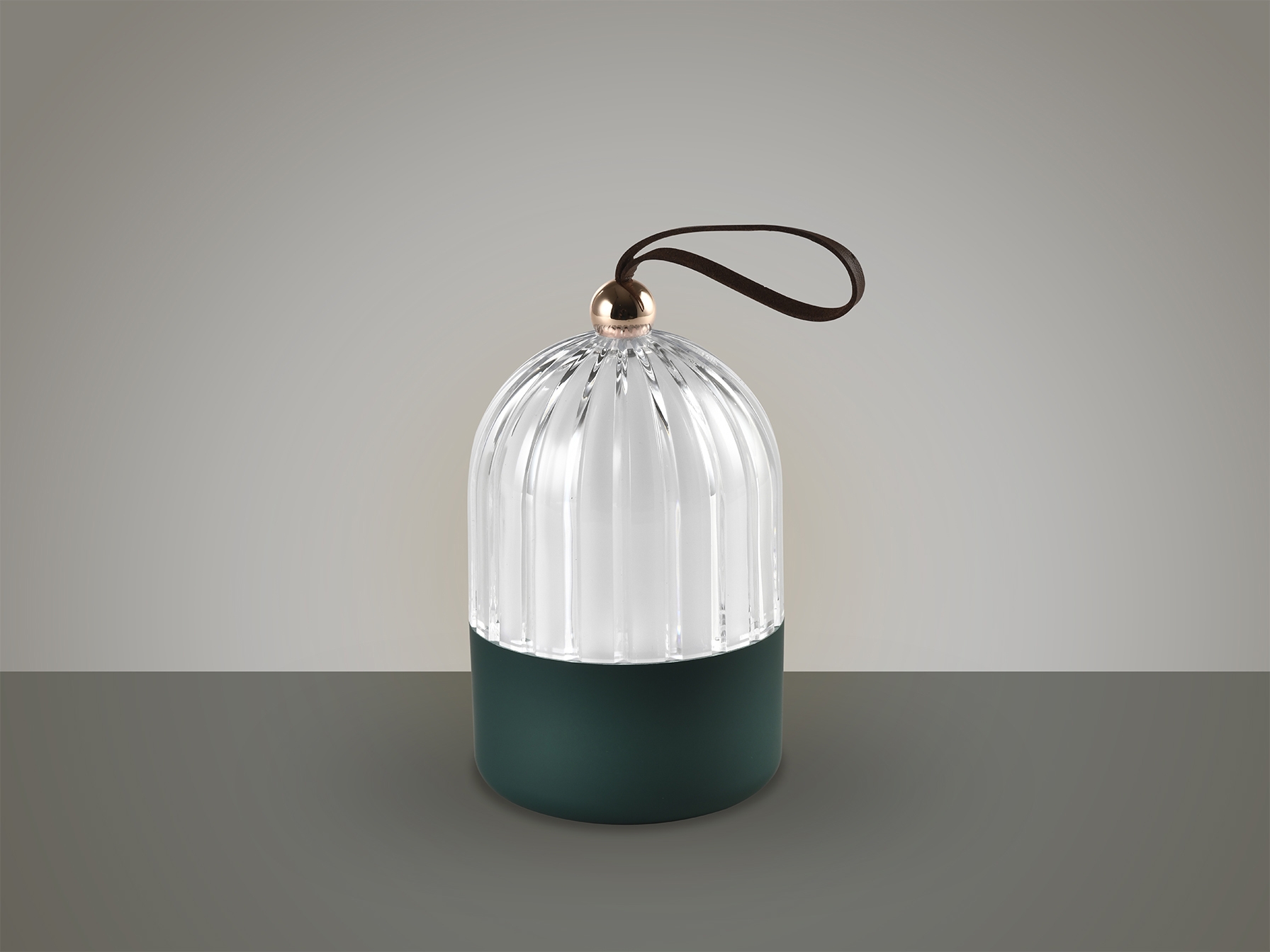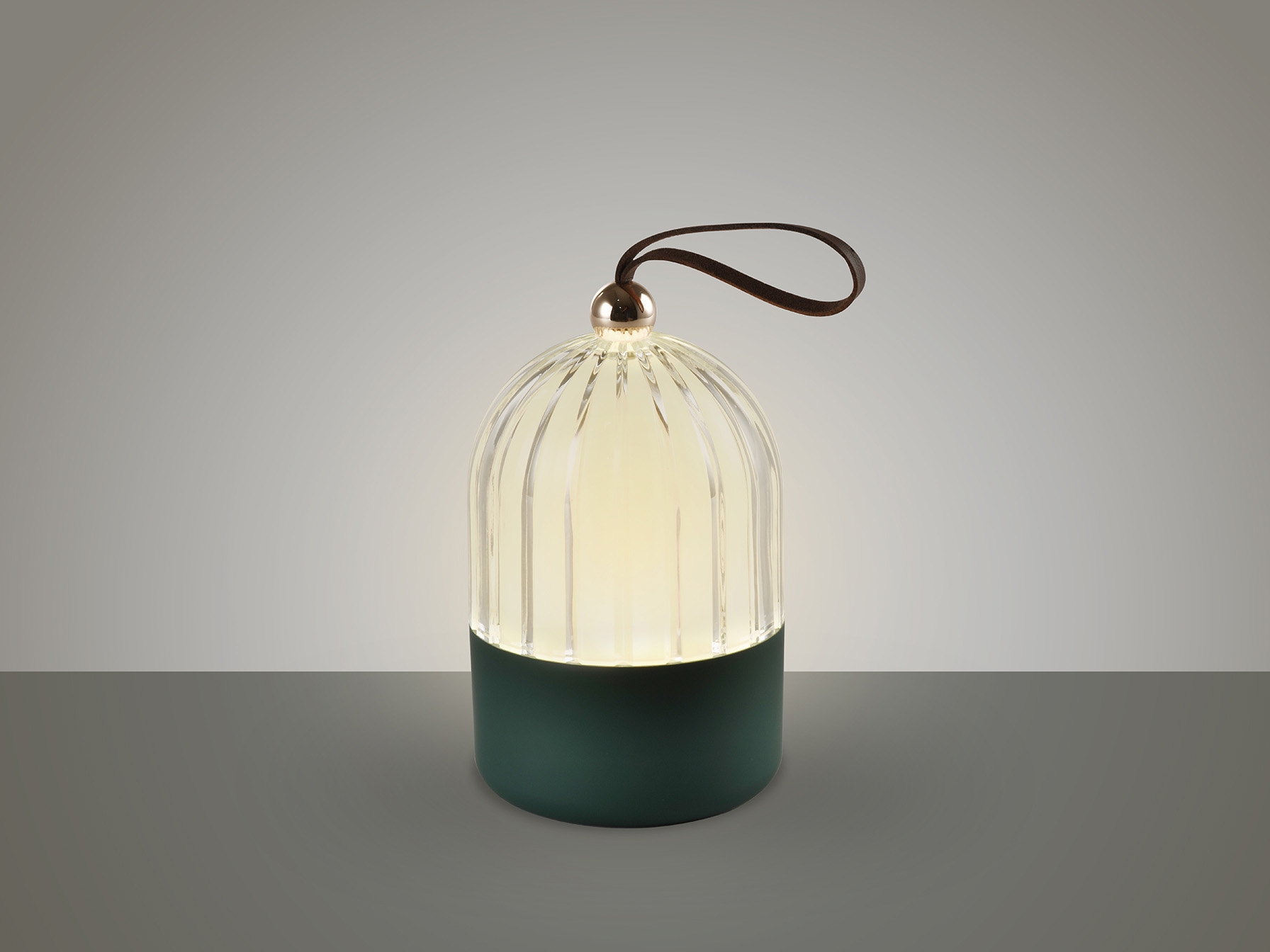 Переносная настольная лампа. Изготовлена из алюминия с матово-зеленой отделкой. Акриловый абажур, внутренний рассеиватель опалового цвета. Контактная система зажигания. Аккумуляторная батарея и USB-кабель. Светодиод 3 Вт, 100 лм, регулировка яркости и цветовая температура 3000–4000 К.