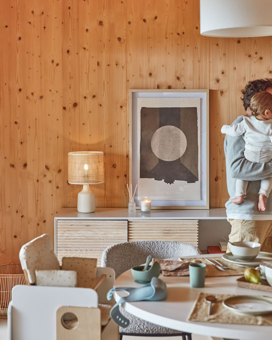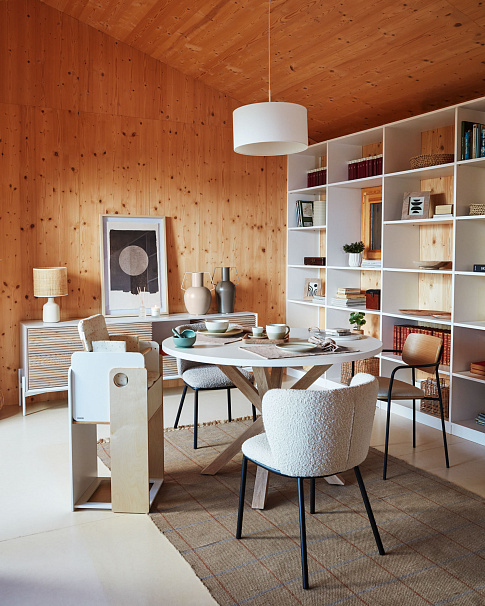 Настольная лампа Erna из белой керамики и бамбука с натуральной отделкой
