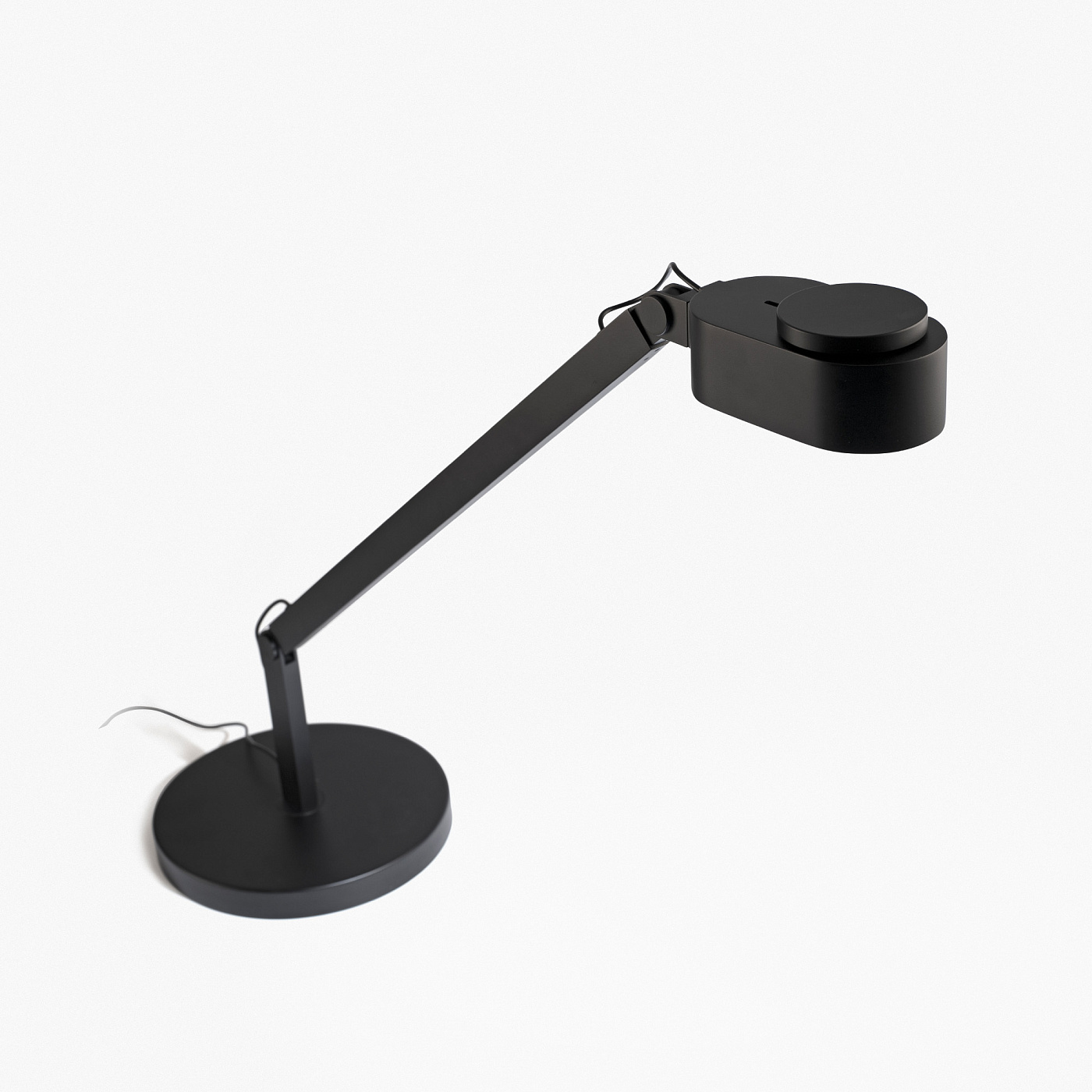 INVITING — это семейство светильников, разработанное Bohman&Folenius для домашнего освещения. Его главная характеристика заключается в том, что свет перемещается, чтобы сопровождать вас в зависимости от различных потребностей и настроения. Головка светильника регулируется как по горизонтальной, так и по вертикальной оси, а свет регулируется. Сдвинув вперед и назад верхнюю окружность, вы можете изменить интенсивность света, а вращая ту же окружность, вы можете изменить температуру цвета. Эта черная настольная лампа предназначена для освещения рабочих столов, мест для чтения или полок, а также изголовья кровати. Включает в себя аксессуар для преобразования настольной лампы в гибкую лампу.