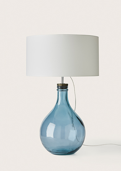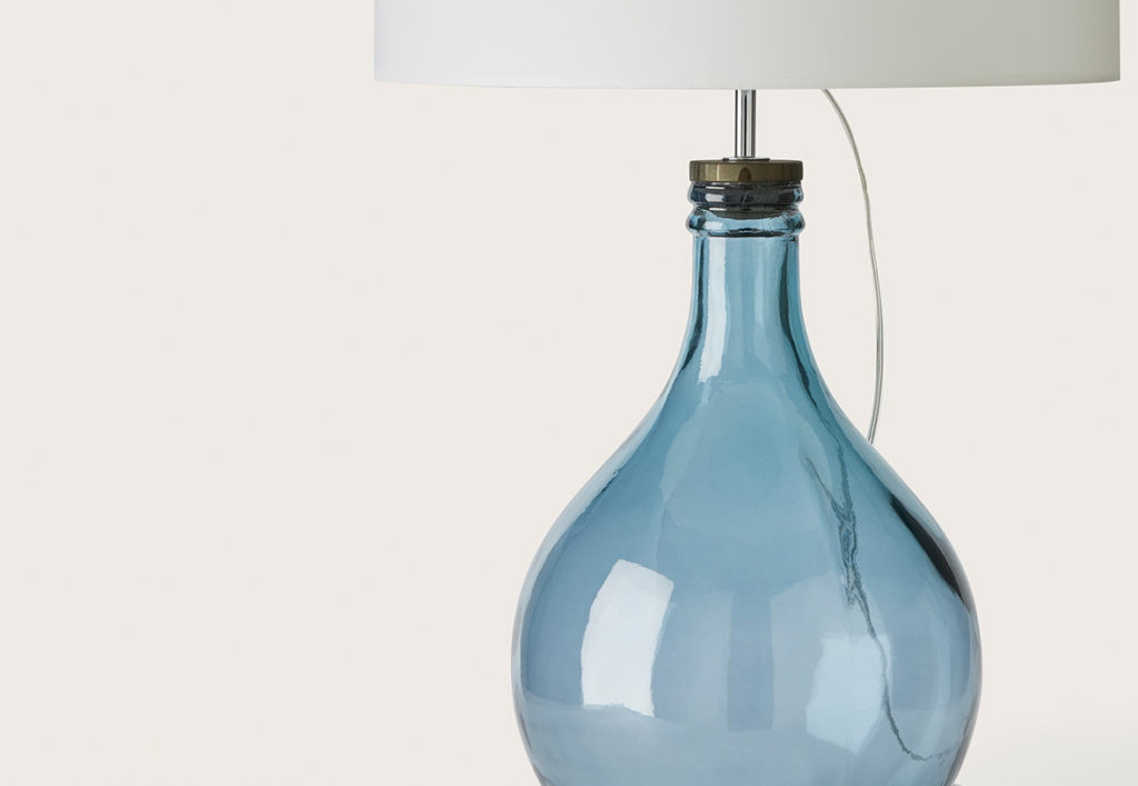 Купить настольную лампу Sam можно в двух оттенках стекла: синем или коричневом. В обоих вариантах модель станет безусловным украшением гостиной, спальни, прихожей.