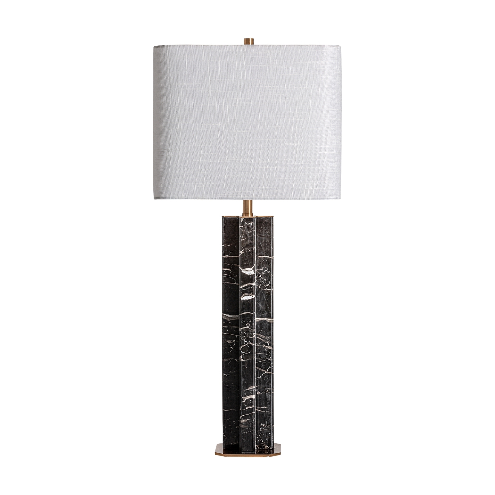 Настольная лампа черного цвета в стиле арт-деко. Изготовлен из железа в сочетании с мрамором. Съемное изделие.