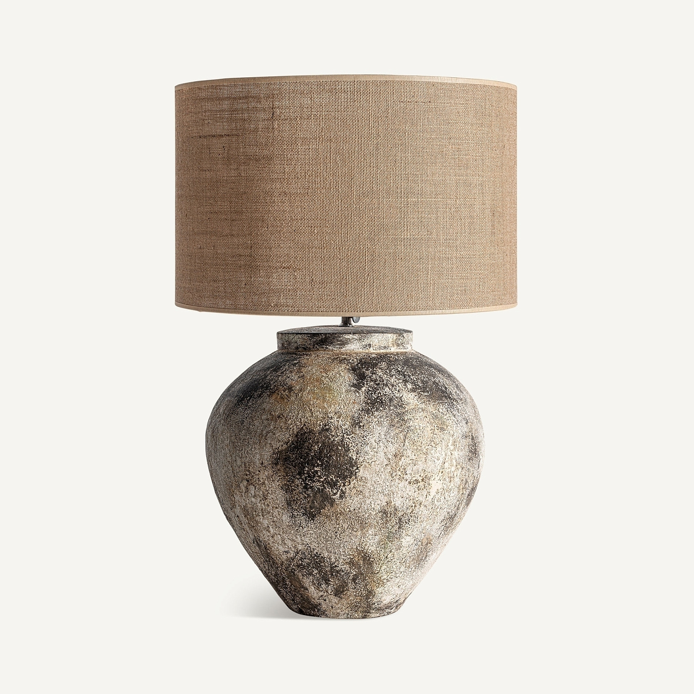 Настольная лампа. Изготовлен из джута в сочетании с терракотой.