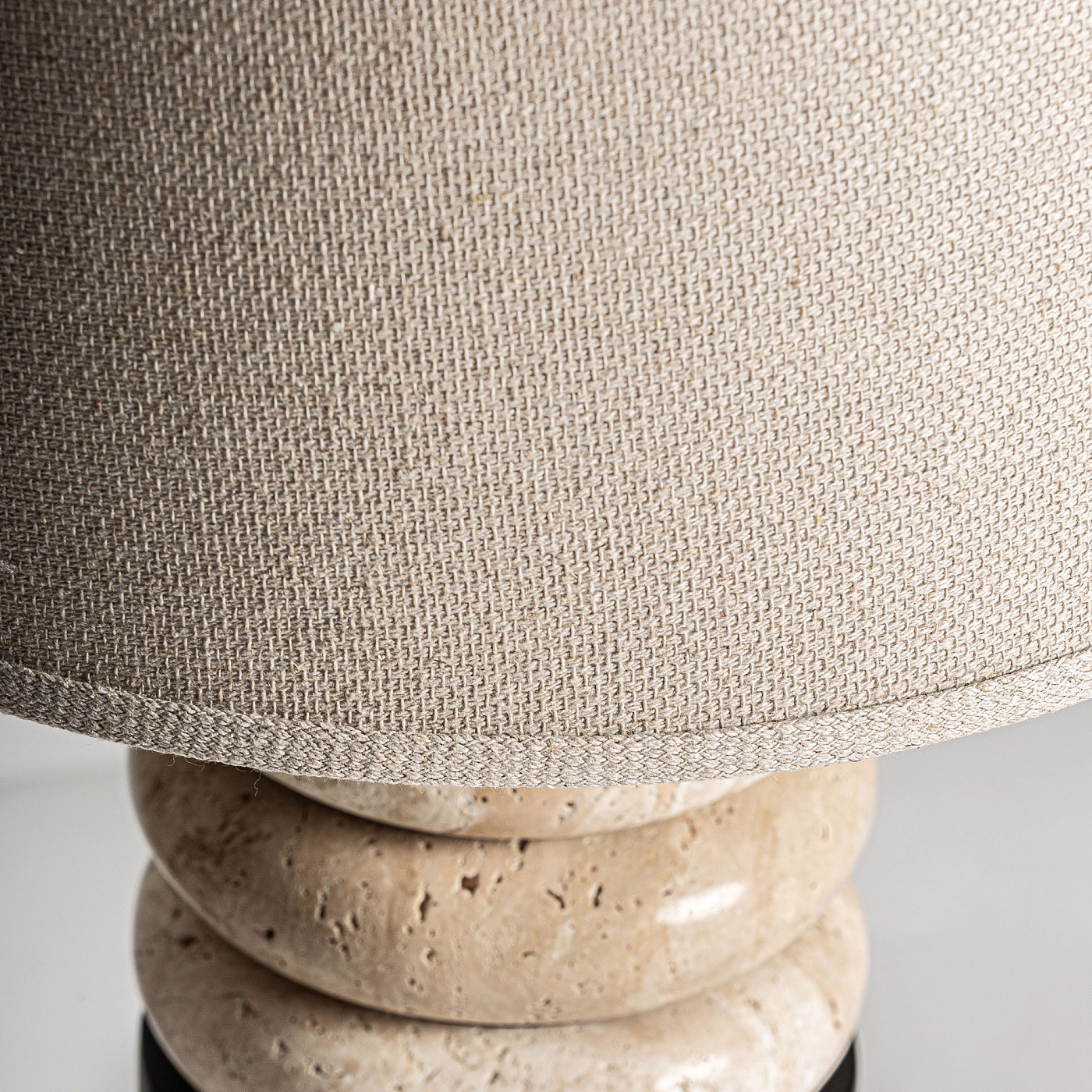 Настольная лампа в стиле арт-деко. Изготовлен из мрамора черного цвета в сочетании с железом, коричневого и льняного цвета. Съемное изделие.