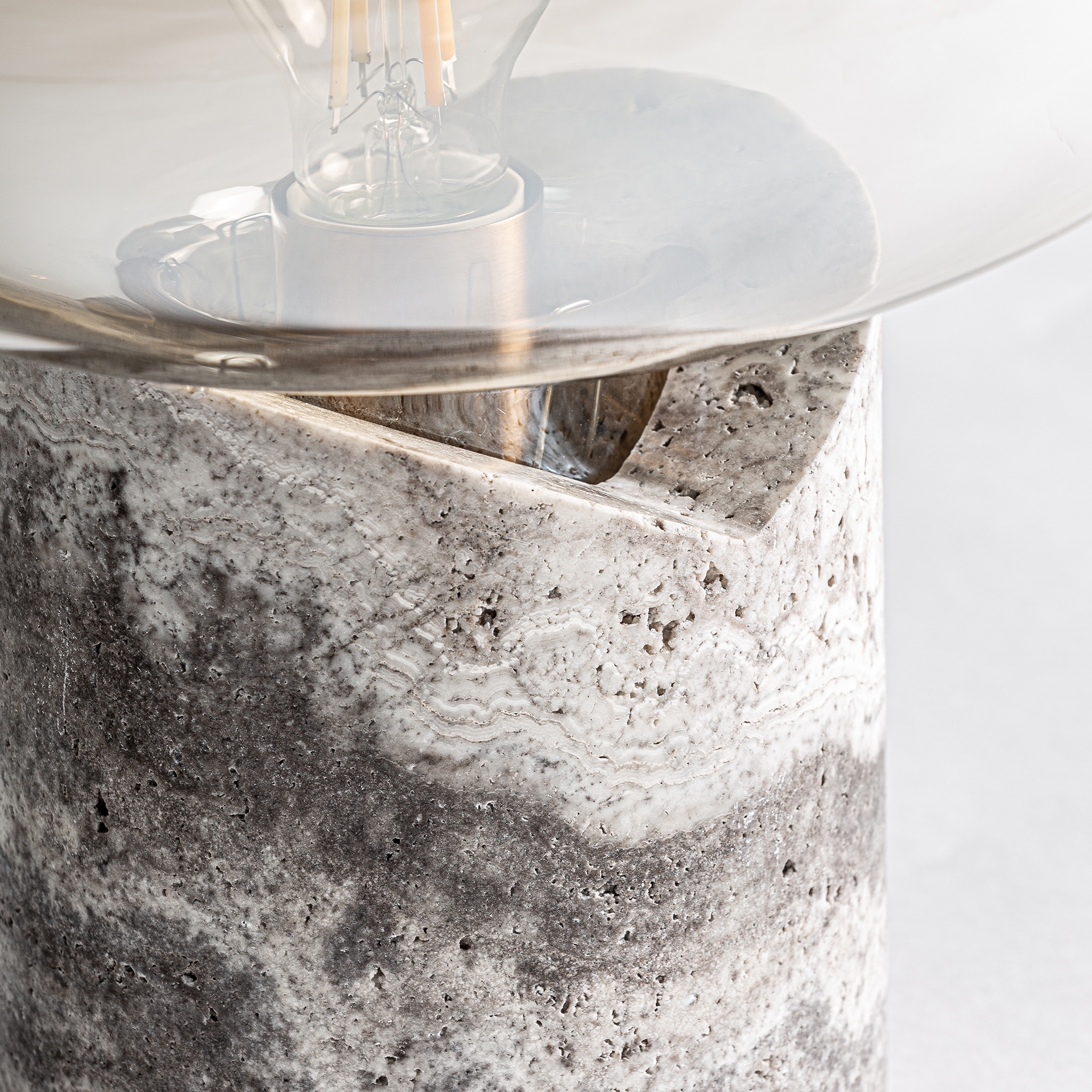 Модель Dumo сочетает в себе благородные материалы и компактный, скульптурный дизайн. Основание из серого мрамора придает изделию солидность, а прозрачный стеклянный плафон смягчает свет, делая его более естественным. Ширина: 32 см, Глубина: 32 см, Высота: 35 см