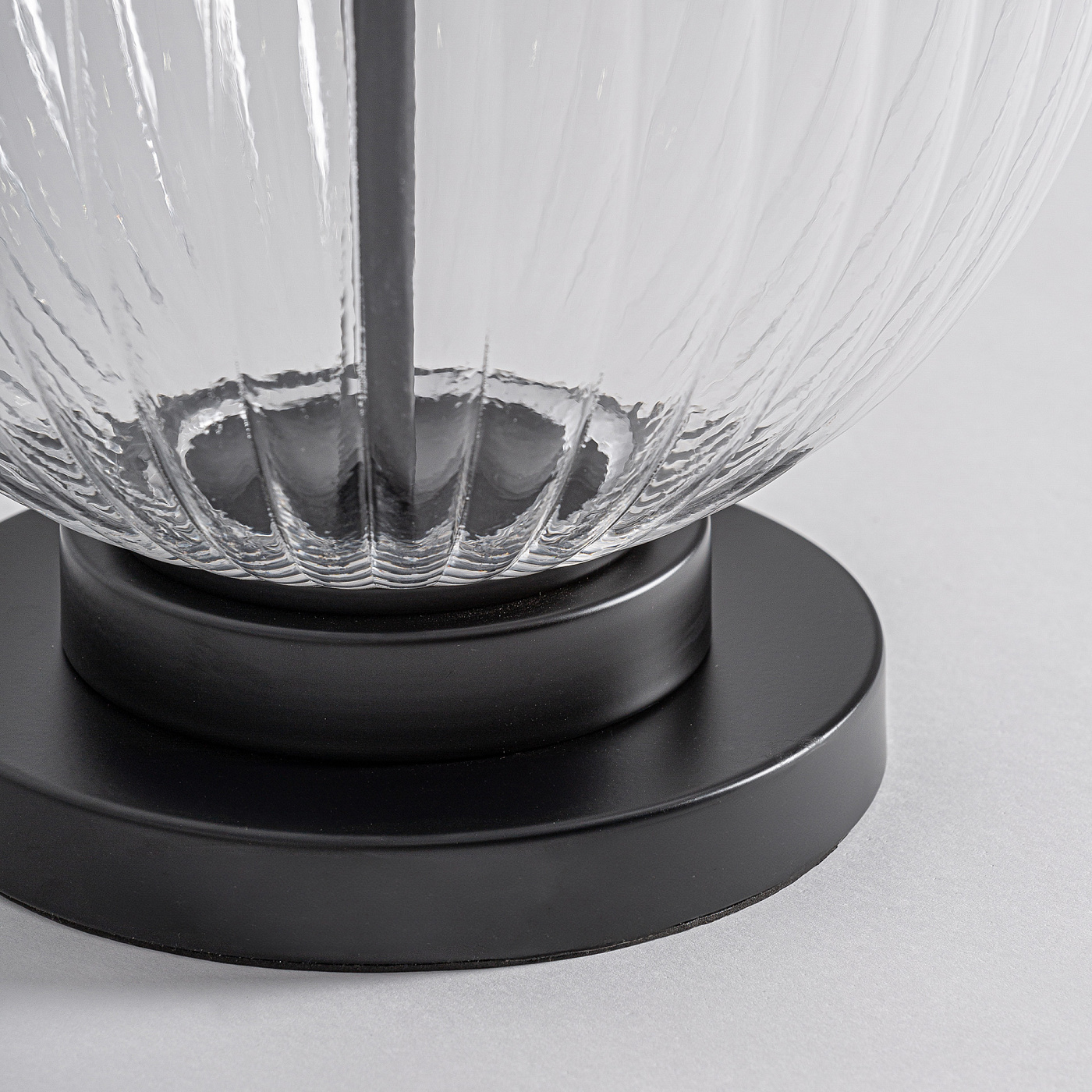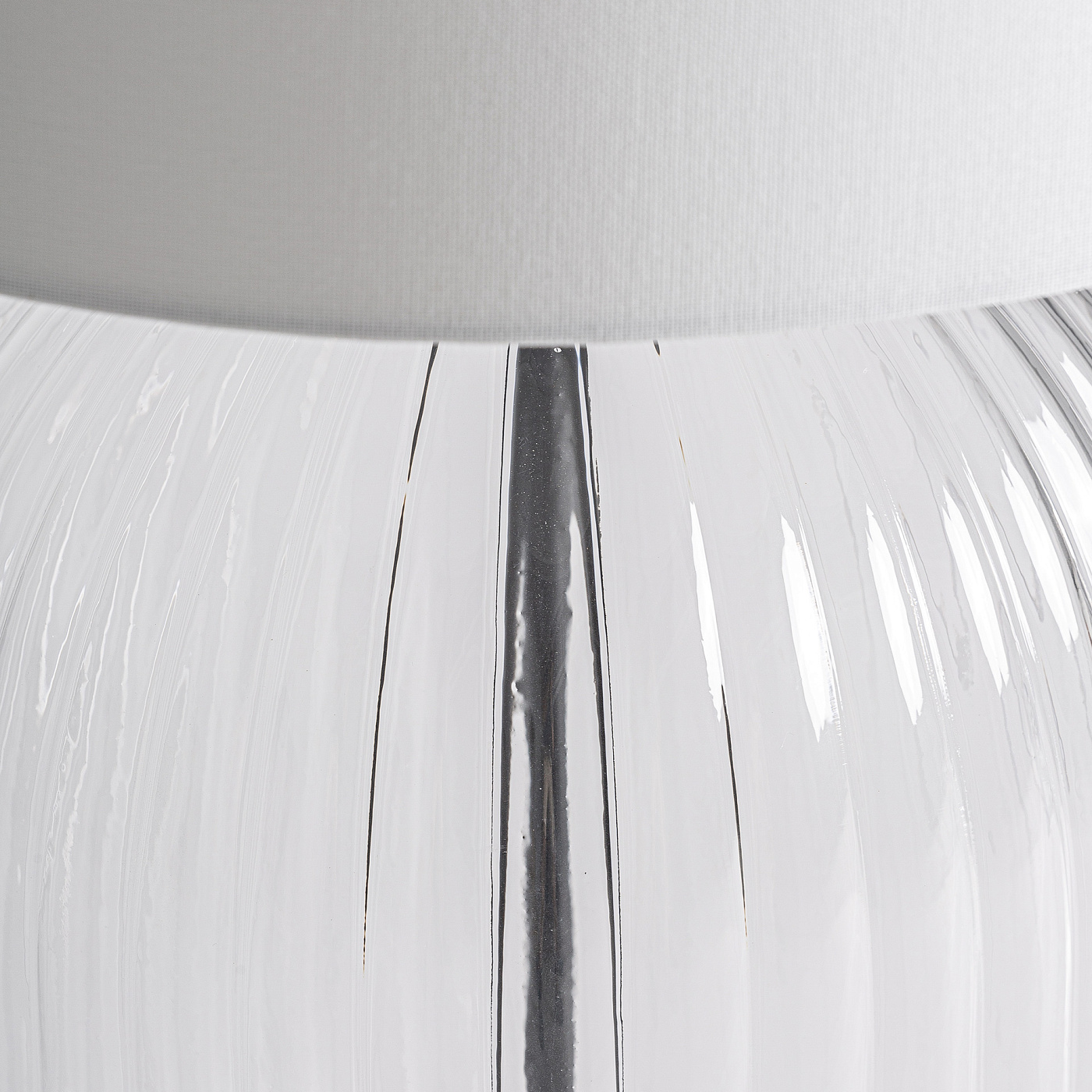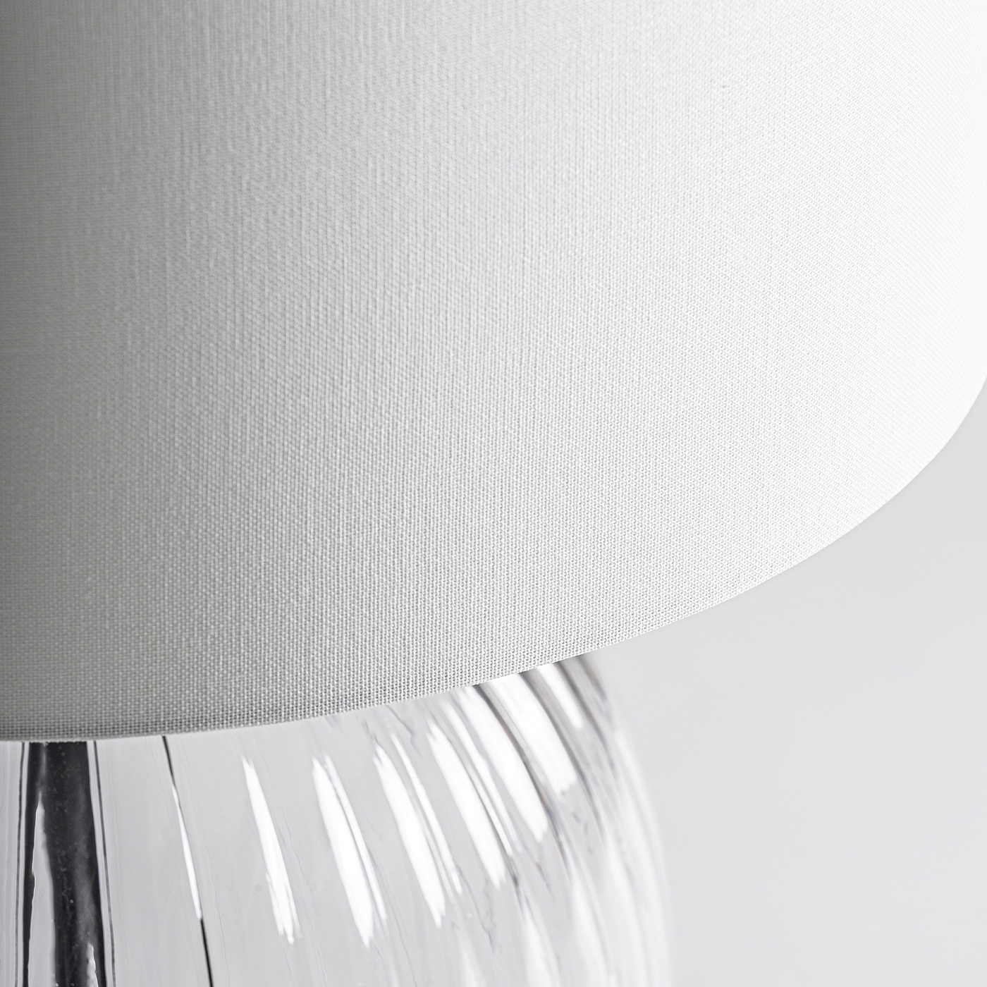 Настольная лампа в классическом стиле, выполнена из прозрачного стекла в сочетании с черным железом и белым льном. Изделие можно разобрать. Ширина: 43см, Глубина: 43см, Высота: 88см