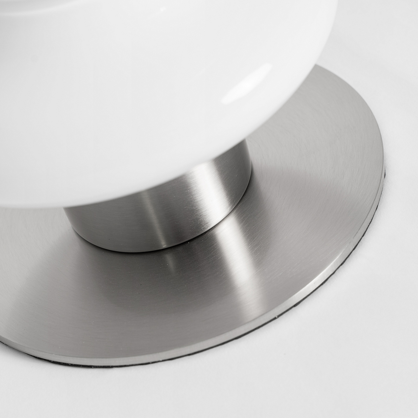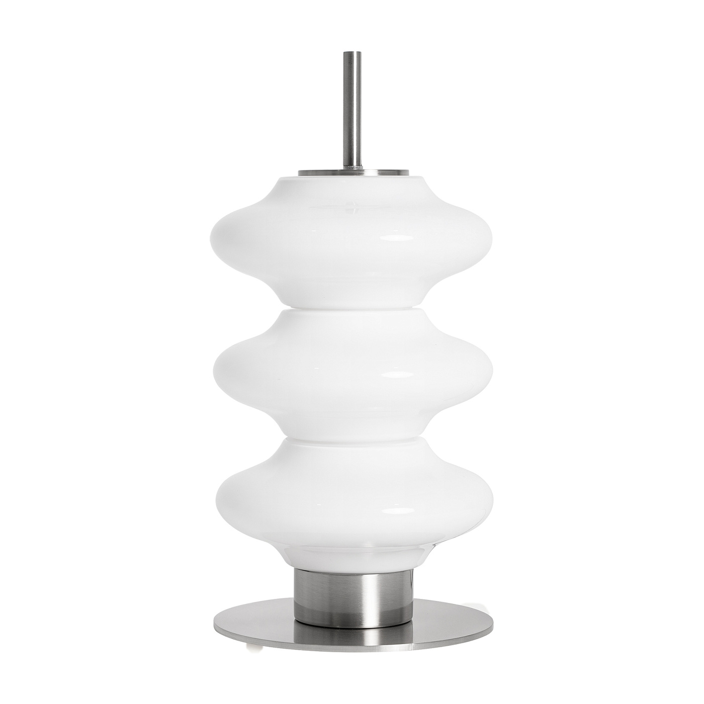Современная настольная лампа Tiare из белого стекла в сочетании с серебристым железом. Изделие разборное. Ширина: 21 см, Глубина: 1 см, Высота: 44 см