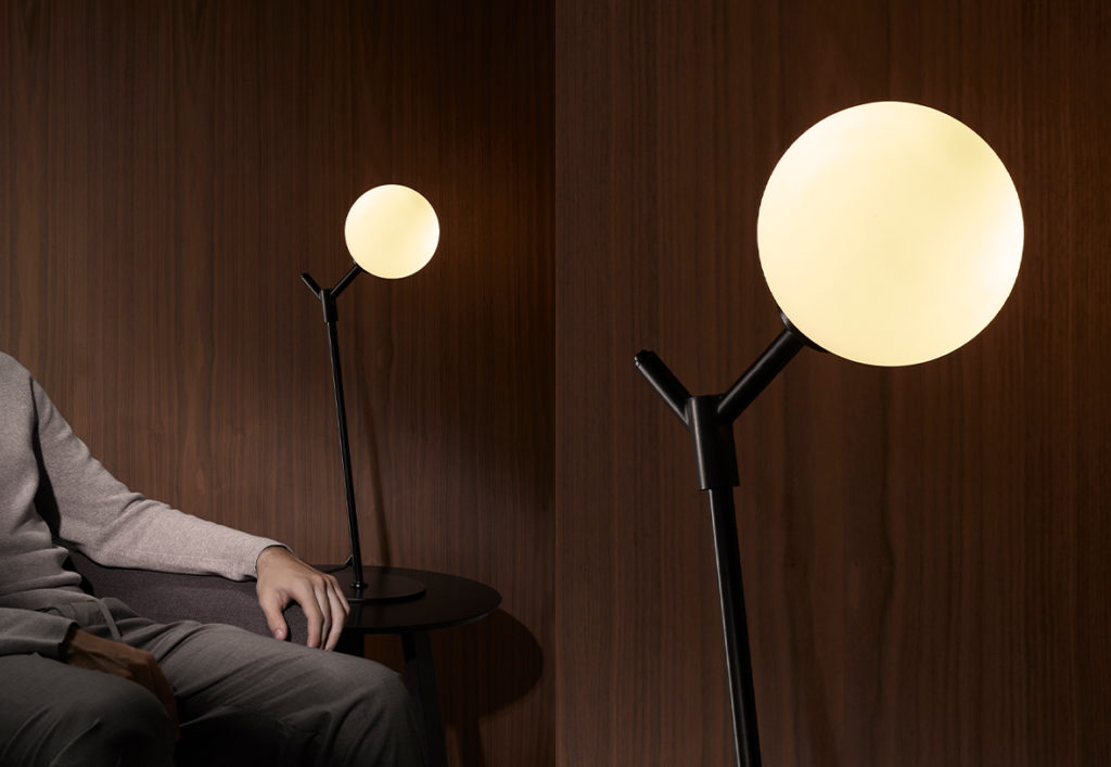 Настольная лампа Atom черный металл/опаловый плафон