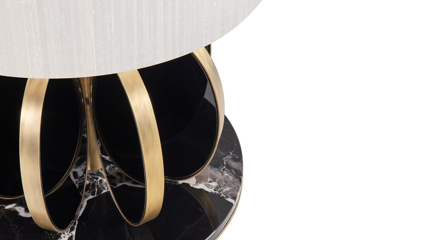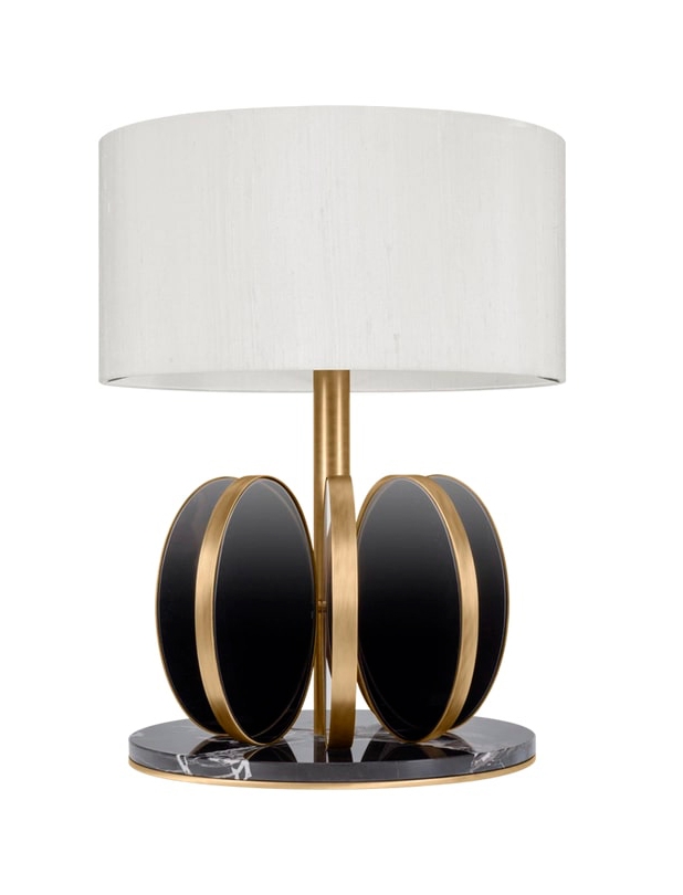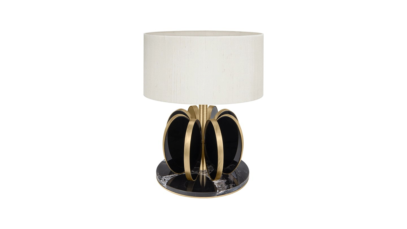 Привлекательная настольная лампа BUDAPEST со скульптурным веером эллиптической формы вокруг ножки выглядит так же хорошо днем, как и ночью.