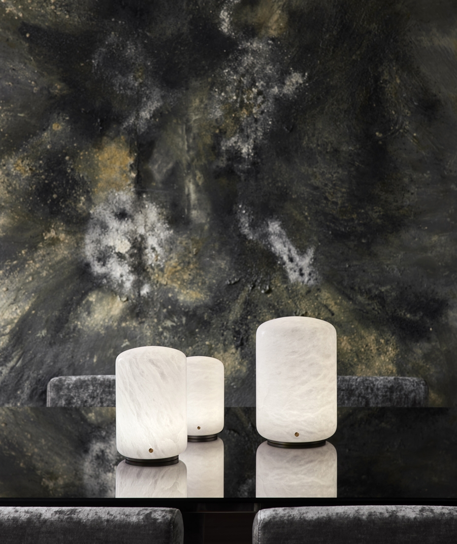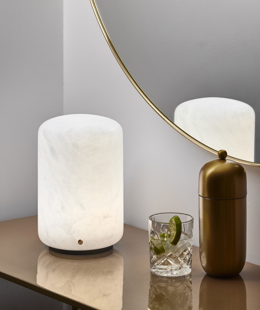 Capsule - это семейство ламп, разработанных таким образом, чтобы максимально использовать их основной материал, алебастр, и обеспечивать мягкий свет в любом общественном или жилом помещении. Эти лампы имеют цилиндрическую форму, цилиндрические формы усилены плавностью их изгибов, которые обеспечивают равномерное освещение, раскрывая глубину и уникальные текстурные детали породы алебастра, каждая лампа вырезана и придана ей индивидуальную форму. Материал добывается на севере Испании, что способствует развитию местного производства. Учитывая естественность материала, цвета и то, что прожилки варьируются от камня к камню, каждая лампа представляет собой уникальное изделие, подчеркивающее естественную красоту материала благодаря своей упрощенной форме. Размещенные на тонкой бронзовой полоске, интенсивность света этих ламп можно регулировать с помощью незаметного тактильного регулятора.