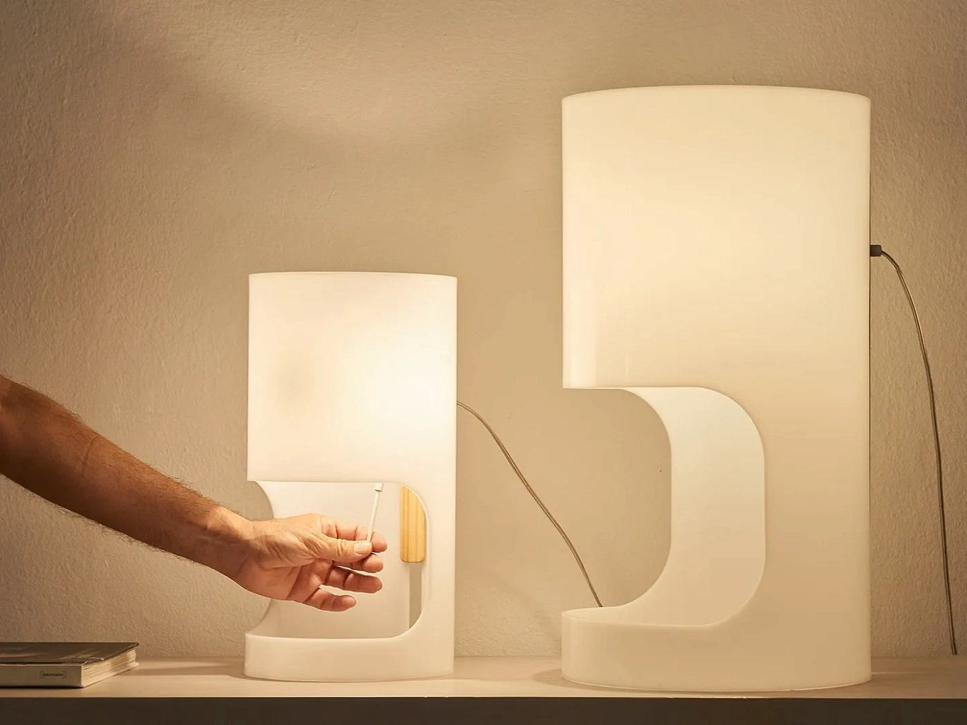 Лампы из коллекциицилиндрические были созданы в 1966 году, в то время, когда дизайнер, входивший в ассоциацию ADI-FAD, стремился укрепить новую профессию в основном функциональном и строгом стиле, лишенном лишнего орнамента. с целью дифференциации того, что важно, от того, что дополняет, Джоан Антони Блан решила, что она будет обходиться без остальных структурных дополнений традиционно устанавливается, как ножка и основание, для создания единого объема, начиная с абажура. В версии 2022 года, чтобы придать ансамблю больше тепла, тонкий профиль из ясеня был вставлен сзади, чтобы разместить патрон лампы и заменить оригинальный метакрилатный элемент, выполняющий эту функцию.